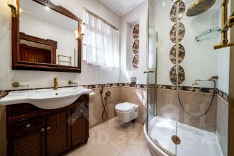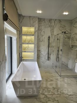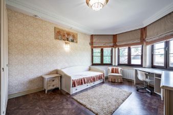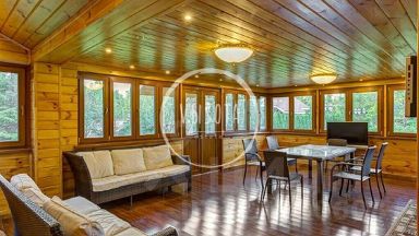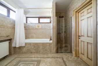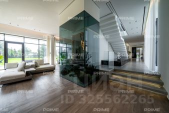 номер объекта: РУ1637. На продажу предлагается дом на Рублево-Успенском шоссе, в 16 км. от МКАД, в коттеджном поселке Горки-8. Дом 4-х уровневый, кирпичный, площадью 814 м.кв., участок - 101 сот. Есть отдельностоящий гараж (6 м/м). Все коммуникации центральные. Готов к проживанию. В цоколе: бассейн с противотоком, сауна с соляными блоками и функцией хаммам, оснащенный тренажерный зал, с/у, душевая, раздевалка, игровая, кинотеатр, рабочая кухня, с/у, погреб с профессиональной холодильной установкой, постирочная и технические помещения с отдельным входом. На первом этаже: холл, гардеробная, большой каминный зал с выходом на террасу, малая гостиная с камином и столовая с выходами на террасу, кухня с кладовой, кабинет, сейфовая комната для хранения ценных вещей, гостевой с/у. На втором этаже: хозяйская спальня с с/у, гардеробной и выходом на огромную веранду, спальня с/у, гардеробной и выходом на веранду, 2 спальни, с/у. На третьем этаже: 2 кабинета, спальня, с/у, кинотеатр, просторная комната для хранения. На участке: гараж на 6 м/м, на втором этаже 4 квартиры для обслуживающего персонала. На участке открытый бассейн с массажными форсунками и подсветкой (5.7 X 10.2 м.), 2 озера, водопад, фонтан, из 101 сотки общей площади участка - 40 соток облагороженного леса с вымощенными дорожками из натурального камня, освещением, французский парк, липовая аллея, фруктовый сад, круглогодичная стеклянная теплица, детская игровая зона с батутом, отдельным домиком и игровым комплексом, беседка, шатер, пляж, зона отдыха в лесу, спортивный комплекс. Дом для отдыха (1 этаж: просторный зал с панорамным остеклением с выходом в лес и в зону барбекю, профессиональная кухня, гардеробная, с/у, 2 этаж: большое клубный зал со стеклянной сценой, большой с/у с душем и выходом на балкон). На участке многофункциональный профессиональный корт.Частная резиденция, половину территории которой занимает лес. Изысканный ландшафтный дизайн: французский парк с собственными озерами, водопадами, фонтанами, розарием, фруктовым садом и липовой аллеей. Дом с эксклюзивным дизайном, меблирован антиквариатом. Ширина стен дома 90 см. Все системы жизнеобеспечения в доме продублированы.