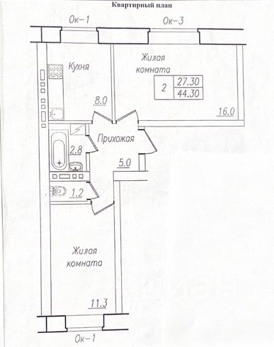 44 м² · Этаж 2 из 3