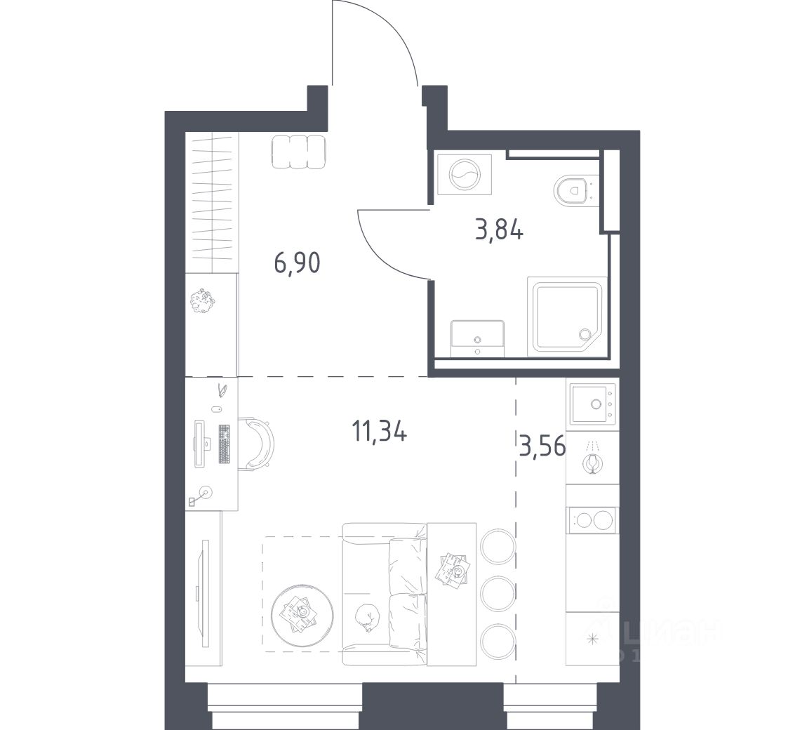26 м² · Этаж 7 из 34