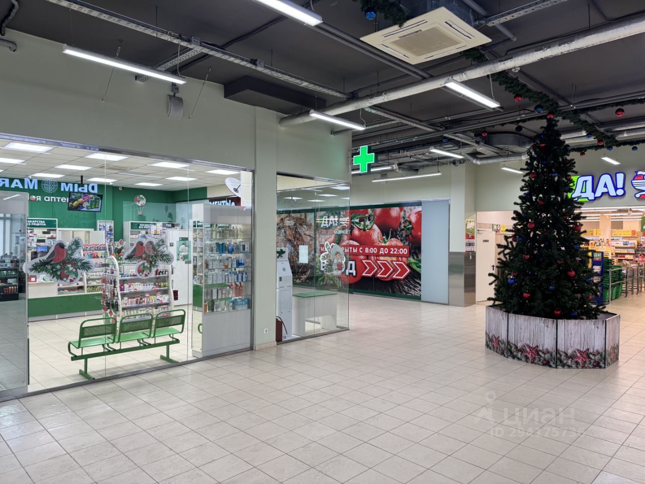 Торговый Центр в микрорайоне Северное Сияние. Помещение расположено при входе в торговый центр. На территории есть наземная парковка на 30 мест , в здании находится супермаркет ДА, ресторан KFC, интернет-магазин ВсеИнструменты.ру и другие арендаторы. Находится по адресу Московская обл., Руза, Северное Сияние мкр, 12. Здание площадью 2191 м2 2019 года постройки