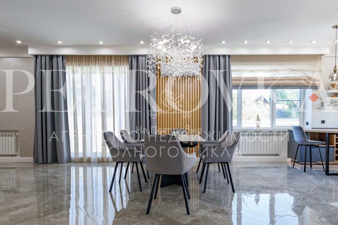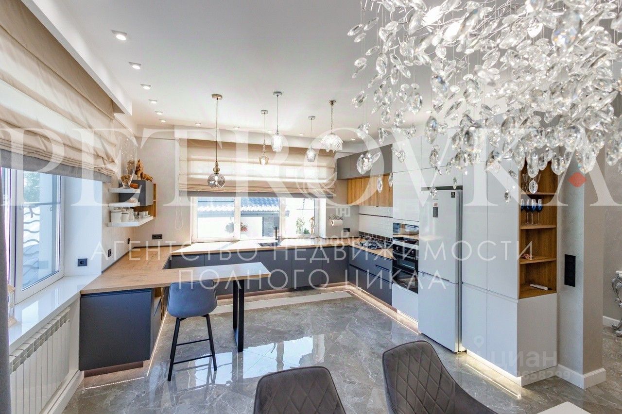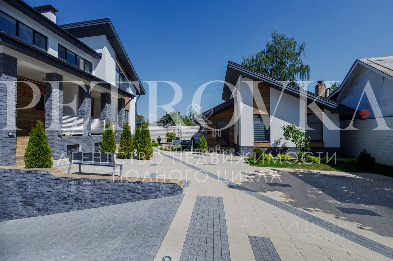 Id 22632. Продается НОВЫЙ СТИЛЬНЫЙ ДОМ с подземным паркингом и гостевым домом. Располагается в с. Петрово-Дальнее, всего в 10 мин. езды от МКАД по Рублево-Успенскому, Ильинскому или Новорижскому шоссе. Дом очень удобен для проживания большой семьи с разными поколениями, есть отдельные входы. Особое внимание уделено освещению и функциональности дома. Построен качественно: стены - кирпич, фундамент - монолитная плита. Планировка дома:1-я часть: 1 этаж: : терраса, прихожая, просторная кухня-столовая-гостиная, спальня, санузел, душевая, гардеробная, постирочная, 2 этаж: коридор, игровая, спальня, кабинет, спальня, санузел, 2-я часть: 1 этаж: терраса, прихожая, просторная кухня-столовая-гостиная, спальня, санузел, душевая, 2 этаж: коридор, санузел, постирочная, 2 спальни. Отдельного внимания заслуживает цокольный этаж, который отвели под шикарную парковку, котельную и комнату для водителя. Парковка отапливается, сделаны выводы для шланга и для подключения мойки Karcher. Центральные коммуникации: 60 кВт электричество, магистральный газ, водопровод, канализация, оптоволоконный интернет. Уход за участком 9 сот. займет минимум времени: выполнено мощение, дорожки, выделена зона барбекю с газоном и цветниками. Подсветка с датчиками движения. На участке стоит гостевой дом 64 кв. м, полностью оборудованный мебелью и техникой для проживания. В доме все сделано, чтобы проживать с комфортом круглый год. Рядом развитая инфраструктура Рублевки и Новорижского шоссе: ТЦ, магазины, лучшие учебные заведения, развлекательные центры, рестораны, мед. клиники, салоны красоты, водоемы, парки и др. Звоните и приезжайте на просмотр.