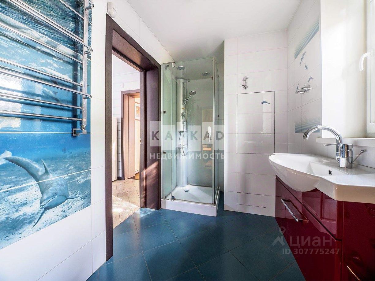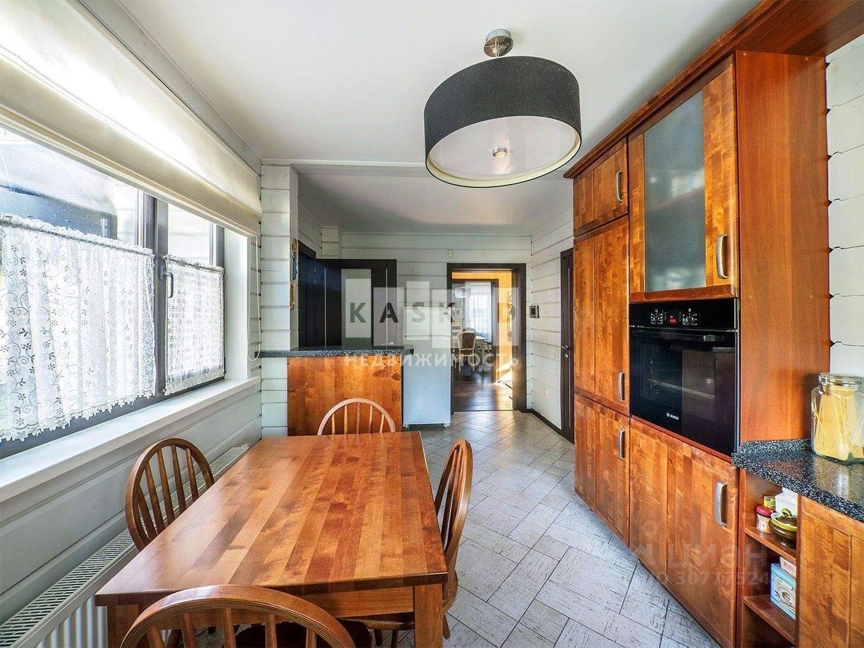 На первом этаже находится просторная кухня ( техника Bosch) гостиная, каминный зал, с/у со встроенной сауной и теплым полом.