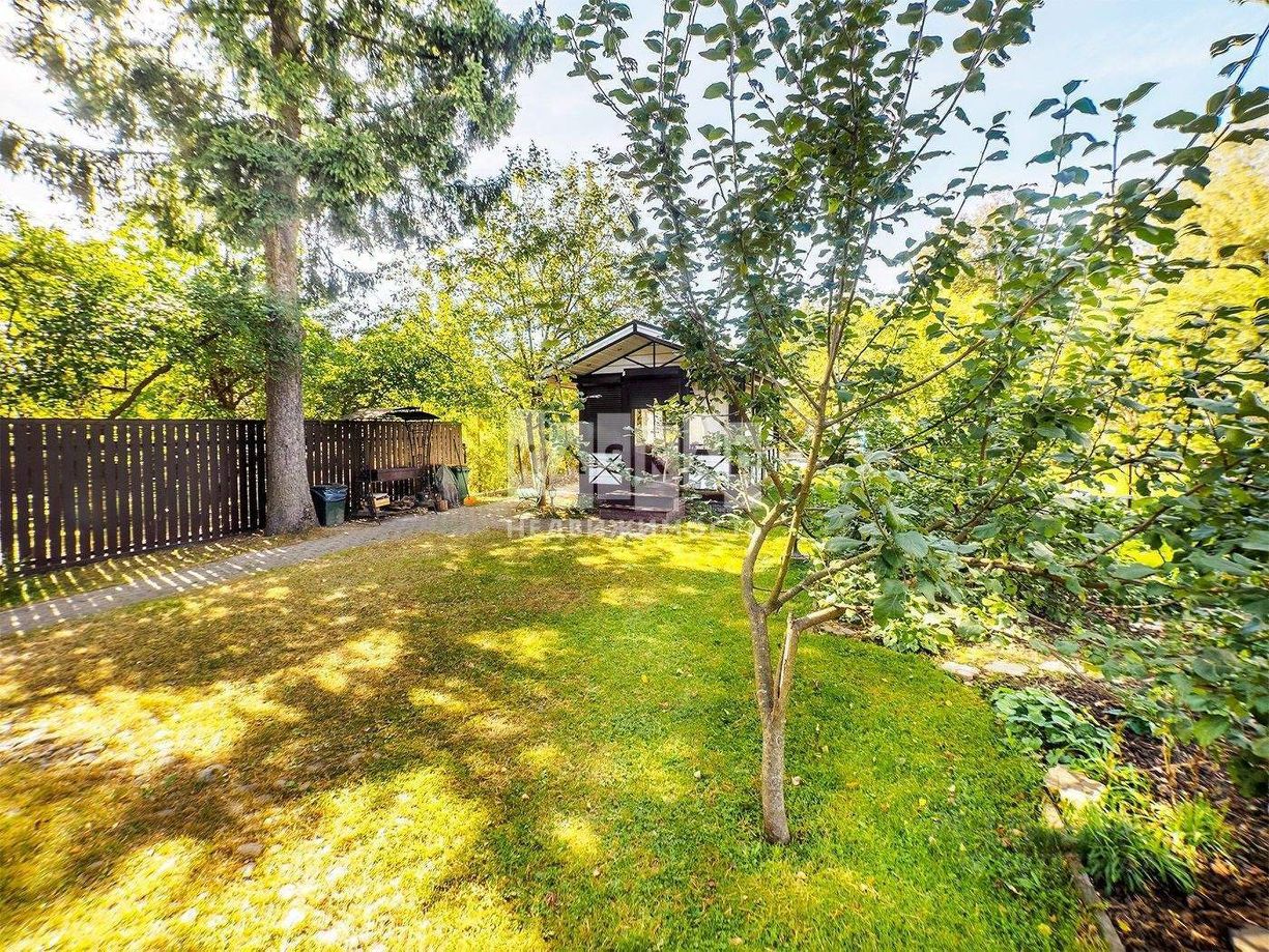 На участке имеется ухоженный газон, плодовые деревья, кустарники (черная, белая, красная смородина, малина) клубника, цветы, пихта, сосны, елки, имеется теплица.
