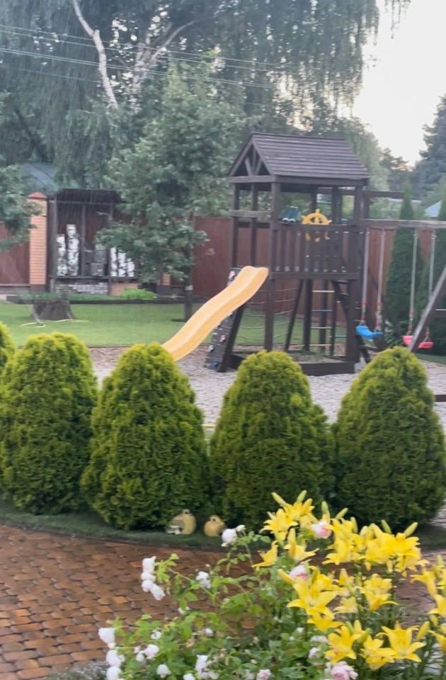 Идеальный дом! Всё, и даже больше для загородной жизни с городской инфраструктурой. Стильный, привлекательный, современный, при этом удобный и практичный участок с мощёными дорожками и множеством садовых и декоративных растений. Правильной формы 25/40, ровный, сухой. На участке детский городок, 67 туй, в том числе шестиметровые! Кустарники и плодовые деревья ( груша, яблоня, черевишня) Дом общей площадью 142,4 кв.м. Материал стен: кирпич, утеплитель, облицовочный кирпич. Высота потолков первого этажа 3.1 м., второго этажа 2.8 м. 1-й этаж: холл, гостиная, кухня, столовая, санузел, гардеробная (стиральная машина, сушильная машина) техническое помещение. 2-й этаж: 3 спальни, санузел. Вода центральная + скважина 80 метров. Септик- Топаз 10.