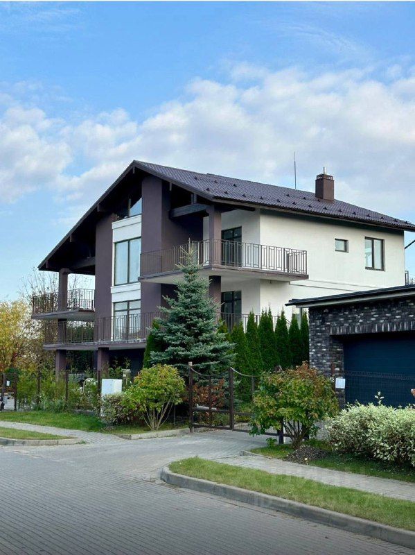 Трёхэтажный особняк с 6-ю спальнями, высокими потолками в 3.5 метров, с 2-мя гаражами под 35 кв.м каждый и общей площадью 440 м.², расположен на видовом участке 13.00 соток.