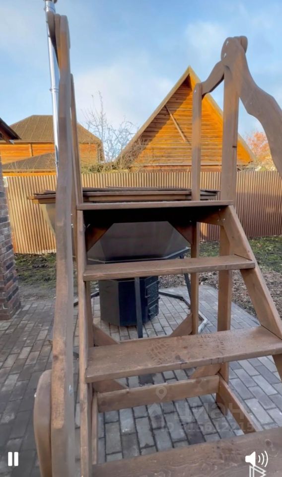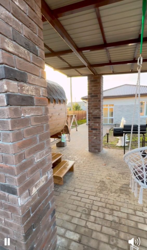 Баня, кедровый сибирский чан, веранда, брусчатка, дренаж, сделан ландшафтный дизайн, высажены туи и голубые ели.