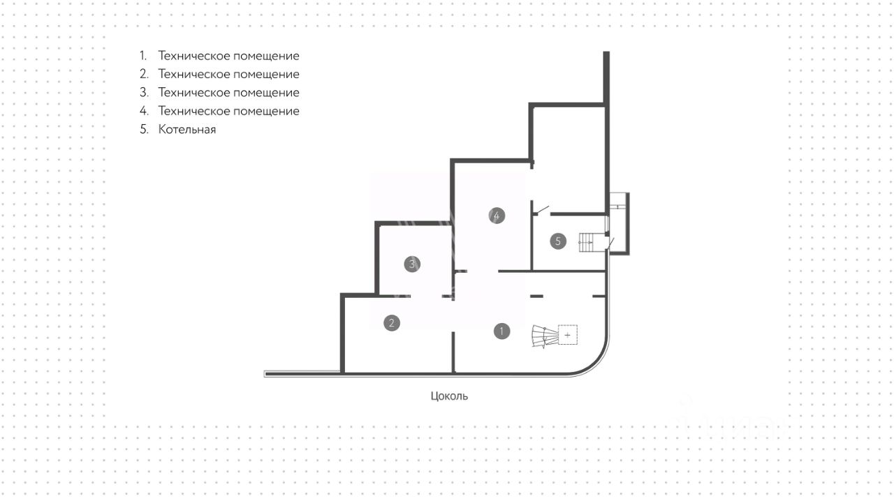 Поэтажное описание Цоколь: 4 технических помещения, котельная.