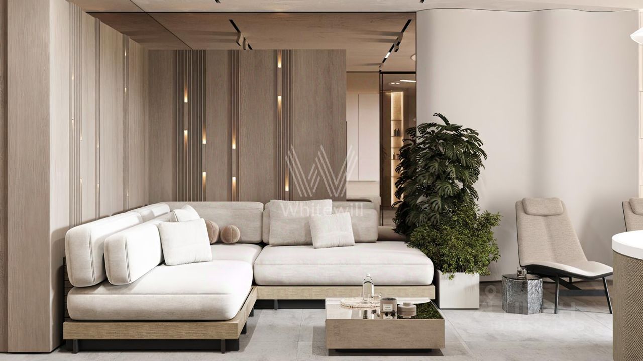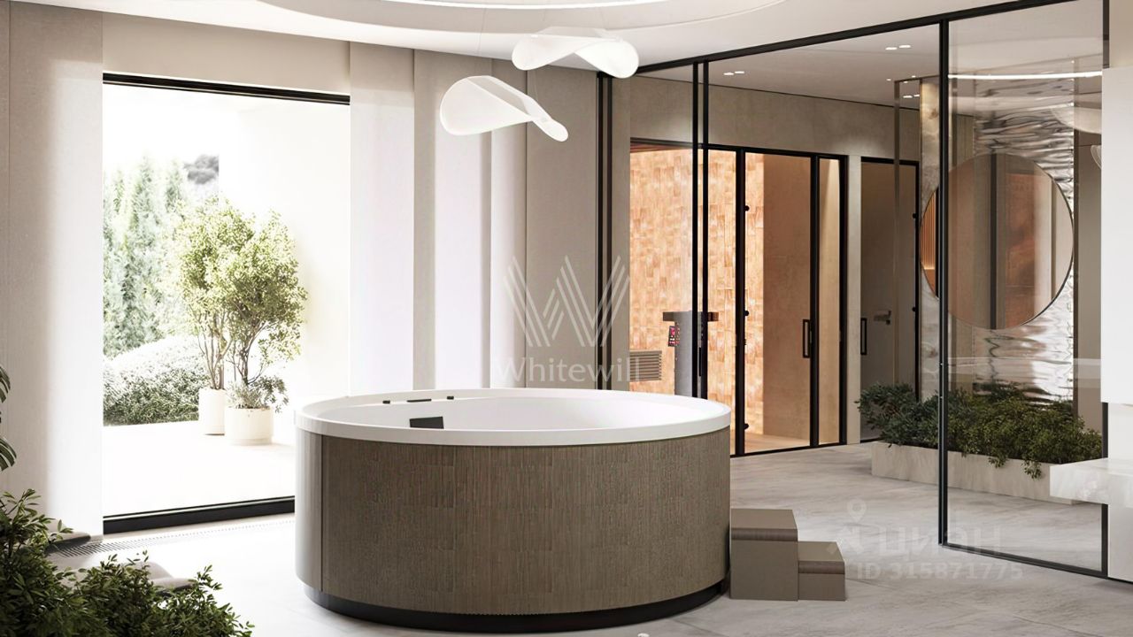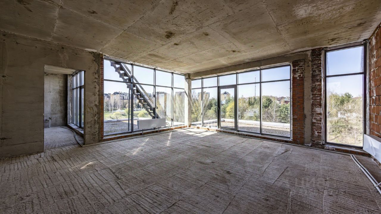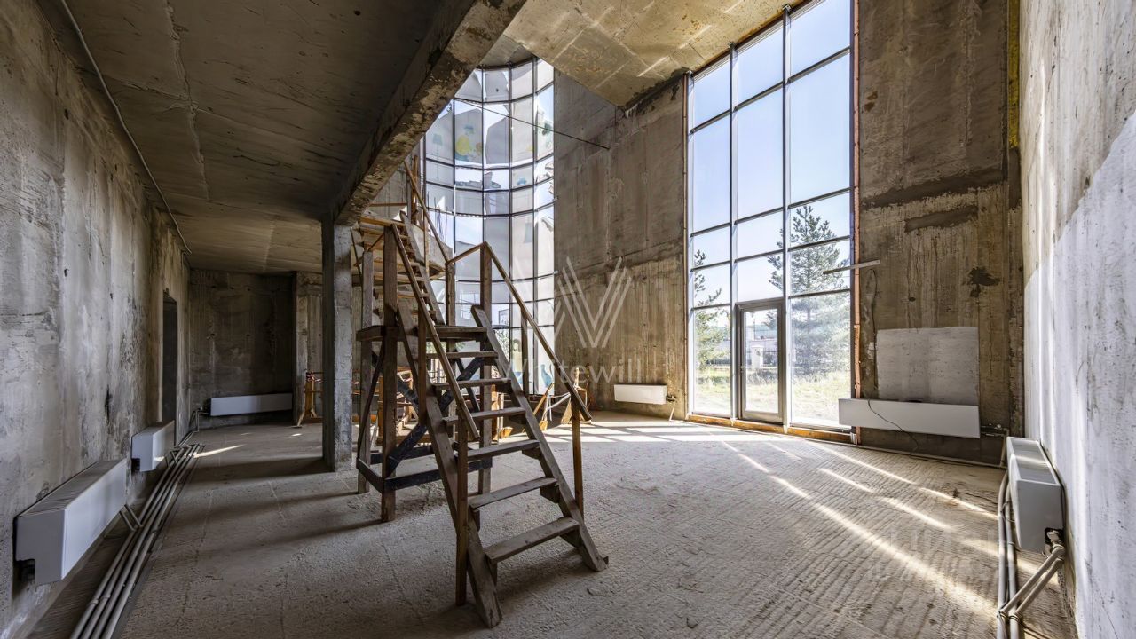 ID 13 437. Березки. Эксклюзив компании Whitewill. Загородная резиденция площадью 1100 м² расположена на участке 23,7 соток на живописной береговой линии. Авторский проект швейцарского дизайнера Даниэля Шиндлера Cubes реализован в форме пирамиды из кубов, где каждый элемент тщательно продуман. Фасад с панорамным остеклением создает эффект единения с природой, открывая великолепные виды на реку и наполняя пространство естественным светом. Второй свет добавляет интерьерам воздушности и простора. Отсутствие отделки позволяет будущим владельцам выбрать финишные покрытия, мебель и технику на свой вкус.
