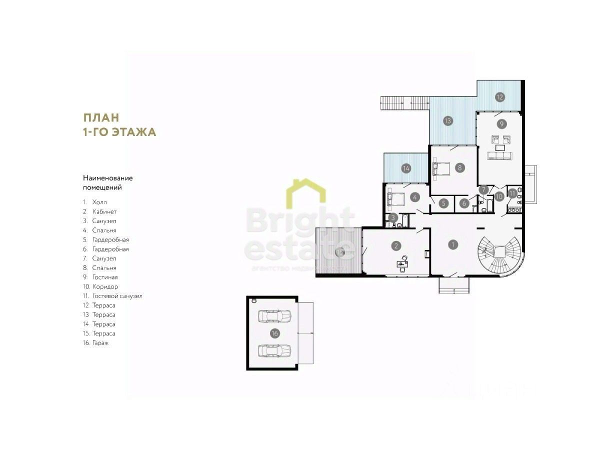НА КАЖДОМ уровне — комфорт и функциональность: Просторная мастер-спальня с ванной и гардеробной, несколько спален с личными террасами, кухня-столовая с выходом на веранду, тренажерный зал, технические помещения и галереи.