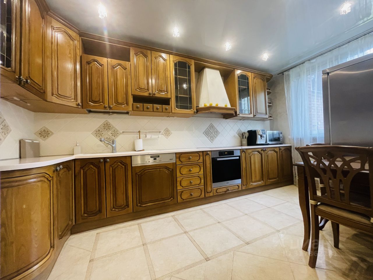 Продам дом в закрытом поселке в окружении леса. Дом 488 м2. На первом этаже расположены: холл, кухня, столовая, гостиная с камином, санузел. Второй этаж разделен на два уровня. На одном из них кинозал, зимний сад и открытый большой балкон. На другом мастер-спальня (санузел с джакузи и душевой) и еще две спальни и санузел, холл. Третий этаж, мансардный, включает в себя три комнаты, санузел и помещения для хранения. На цокольном этаже размещена бойлерная (котловое оборудование Buderus), сауна, предусмотрено место под бассейн (подготовлена и отштукатурена чаша), гладильная, доступ к погребу и комната с бильярдным столом. Гараж вмещает 3 автомобиля. Дом меблирован, укомплектован бытовой техникой. Очень теплый зимой и не жаркий в летний период.