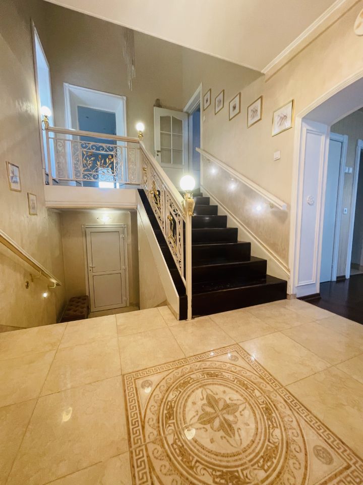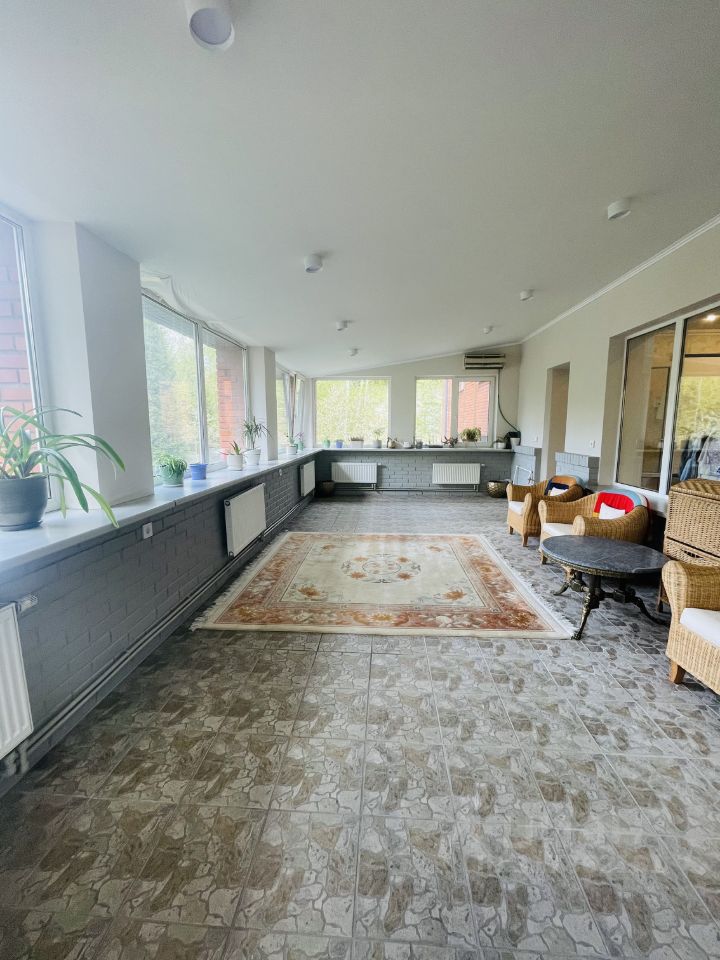 Продам дом в закрытом поселке в окружении леса. Дом 488 м2. На первом этаже расположены: холл, кухня, столовая, гостиная с камином, санузел. Второй этаж разделен на два уровня. На одном из них кинозал, зимний сад и открытый большой балкон. На другом мастер-спальня (санузел с джакузи и душевой) и еще две спальни и санузел, холл. Третий этаж, мансардный, включает в себя три комнаты, санузел и помещения для хранения. На цокольном этаже размещена бойлерная (котловое оборудование Buderus), сауна, предусмотрено место под бассейн (подготовлена и отштукатурена чаша), гладильная, доступ к погребу и комната с бильярдным столом. Гараж вмещает 3 автомобиля. Дом меблирован, укомплектован бытовой техникой. Очень теплый зимой и не жаркий в летний период. Установлена пультовая охрана. На участке сделан ландшафтный дизайн, высажены плодоносящие груши, яблони и вишни, высокие туи, можжевельник. По всему участку установлен автополив.