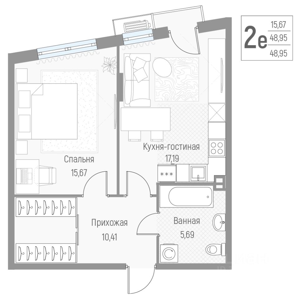 Общая площадь48,8 м2