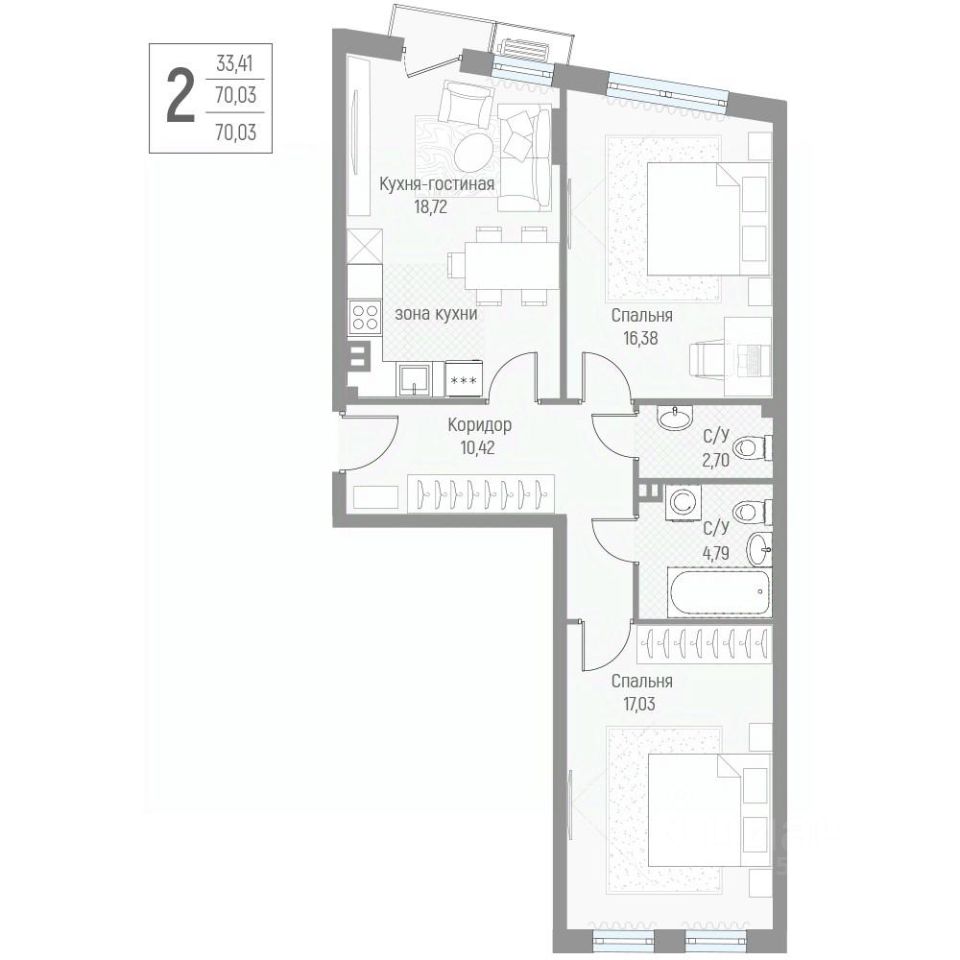 Общая площадь70,03 м2