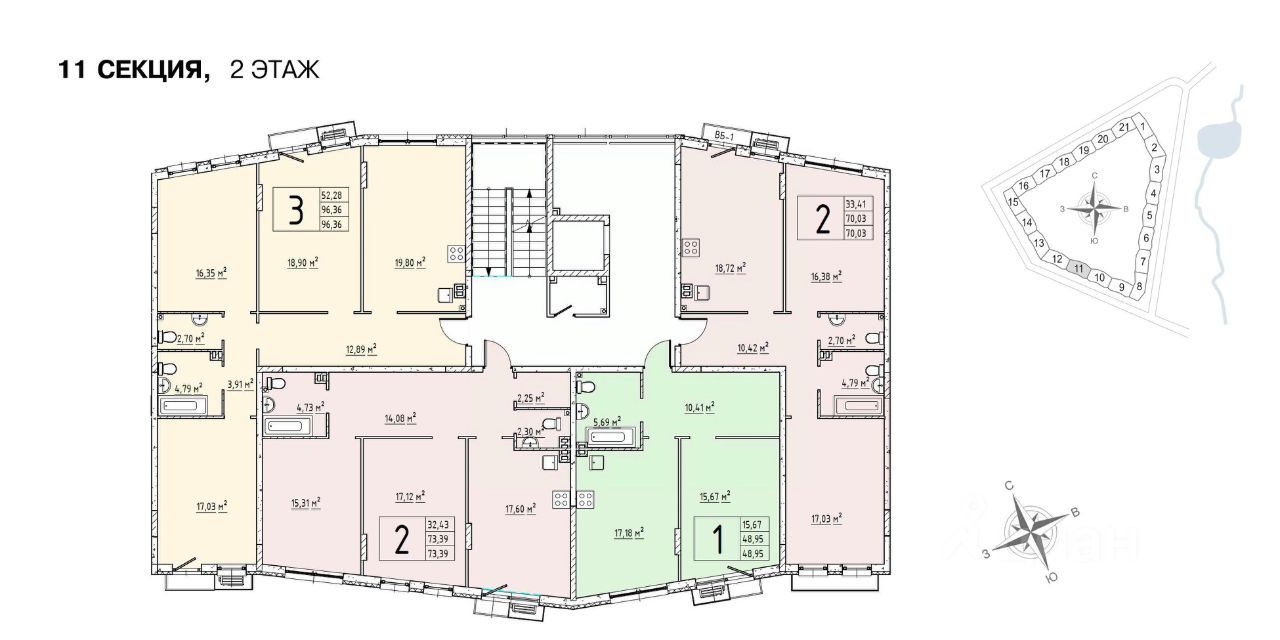 Прямая продажа от застройщика! Продаётся 2-комнатная квартира общей площадью 70,03 кв.м на 2-м этаже 4 этажного дома. Дом сдан.