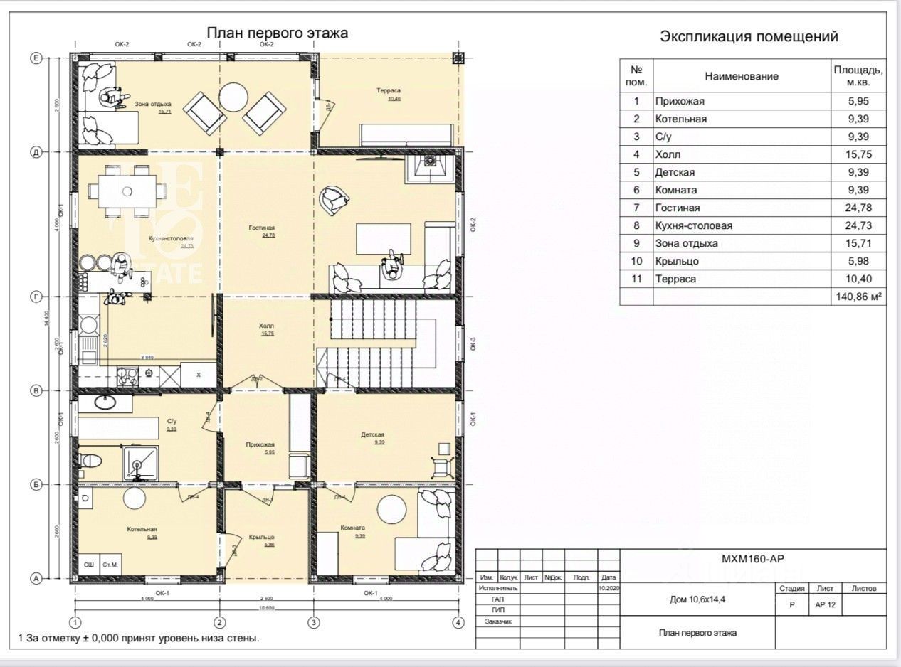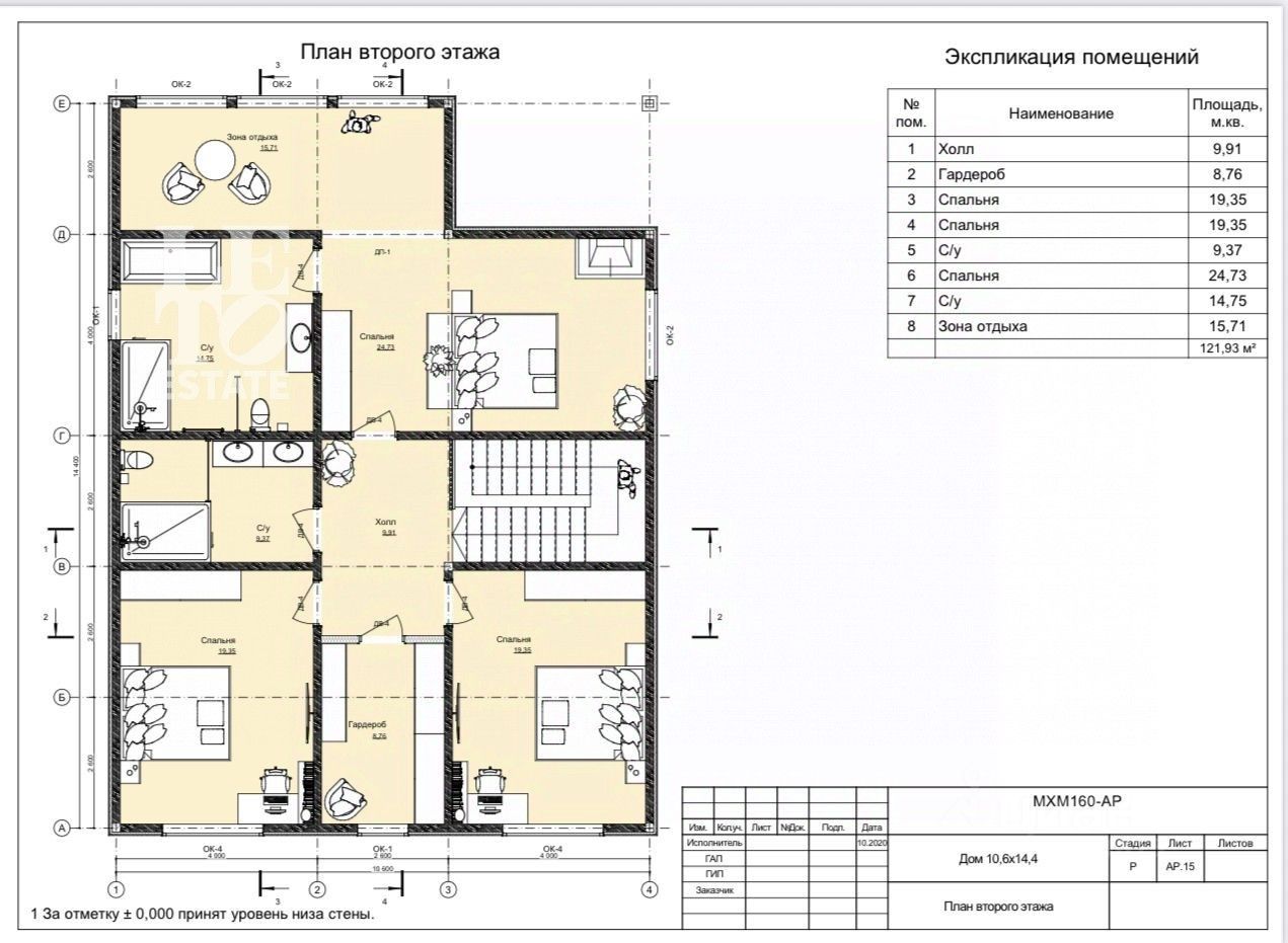 Планировка дома: Первый этаж: прихожая, гостевая комната, санузел, котельная, кухня-столовая с выходом на террасу, гостиная, Второй этаж - две спальни, ванная комната, гардеробная, мастер спальня с кабинетной зоной и отдельной ванной комнатой.