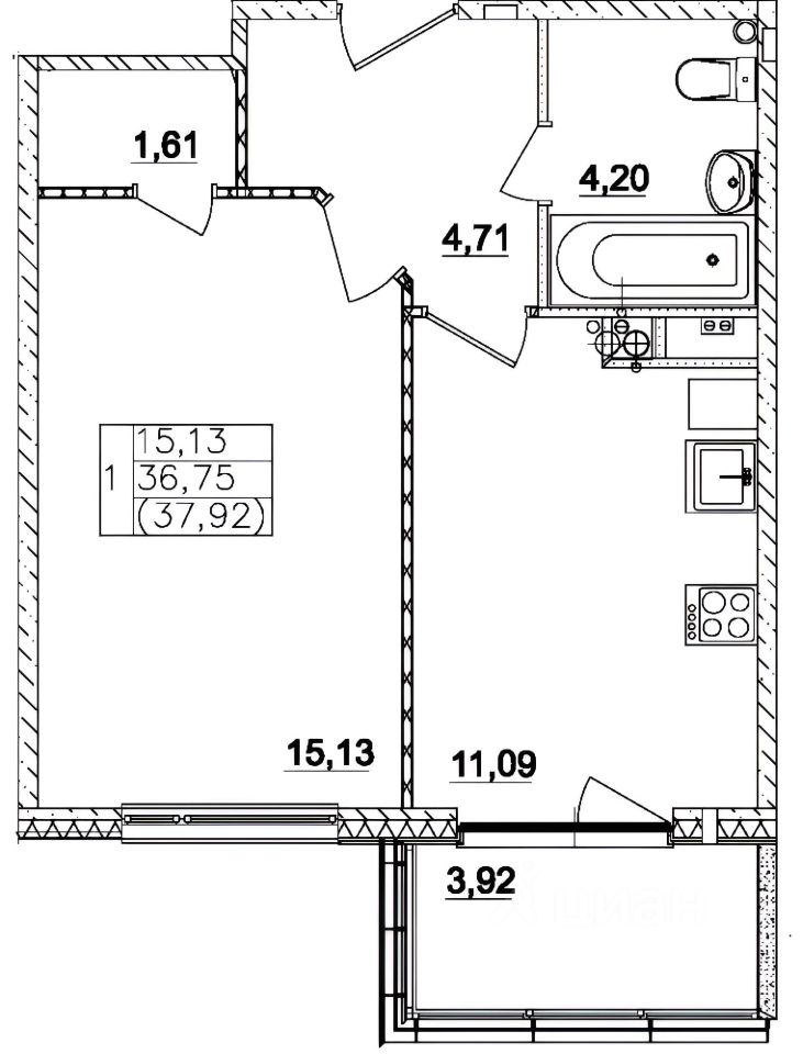 ПЛАНИРОВКА: Кухня 11 м² Гостиная 15 м²
