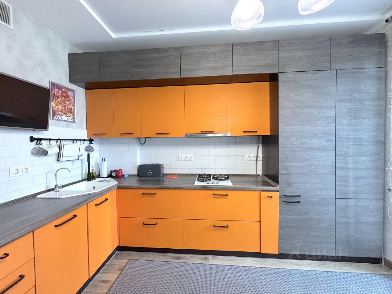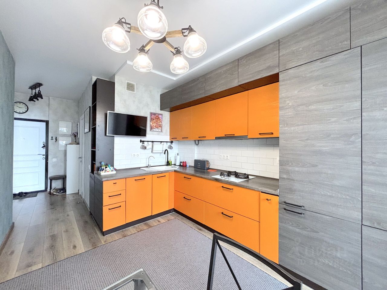 О КВАРТИРЕ: Хороший евро-ремонт по всех помещениях. На полу ламинат с текстурой дерева в гостиной прихожей и кухонной зоне. В ванной керамическая плитка. Дизайнерская мебель и качественная бытовая техника.