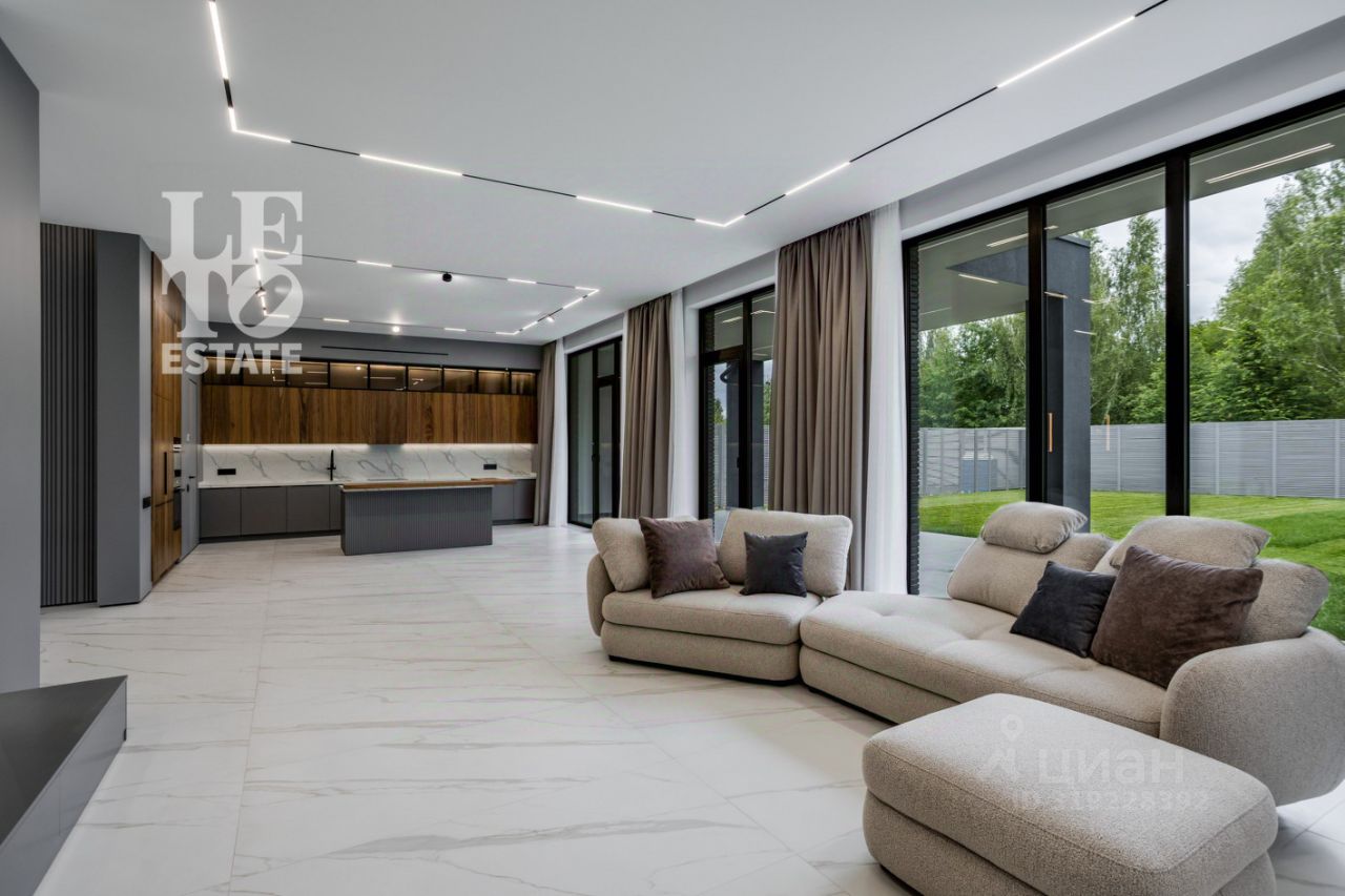 Арт. 108731317 Вашему вниманию предлагается уникальное предложение на рынке недвижимости - дом площадью 600 кв. м в современном стиле под ключ в коттеджном поселке ''Заря'' на Рублево-Успенском шоссе. У дома качественный конструктив: монолитные фундамент и перекрытия, кирпичные стены, плоская кровля, панорамное остекление. Отделка дома: в стиле хай-тек. Интерьер выполнен в пастельных тонах, что делает дом светлым и просторным. Всего в доме пять спален и гостиная. Гараж на две автомашины. В доме установлены: современная система вентиляции и качественные окна. Сделаны теплые полы. Участок площадью 16 соток правильной формы и с отличной инсоляцией. Все коммуникации - центральные.