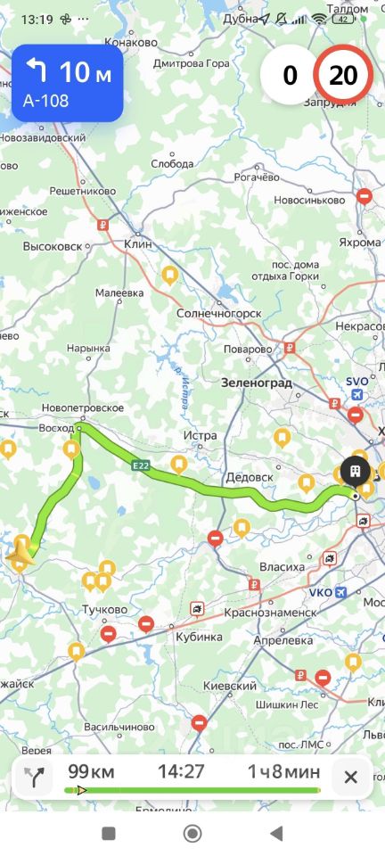от Москвы по Новой Риге час езды.