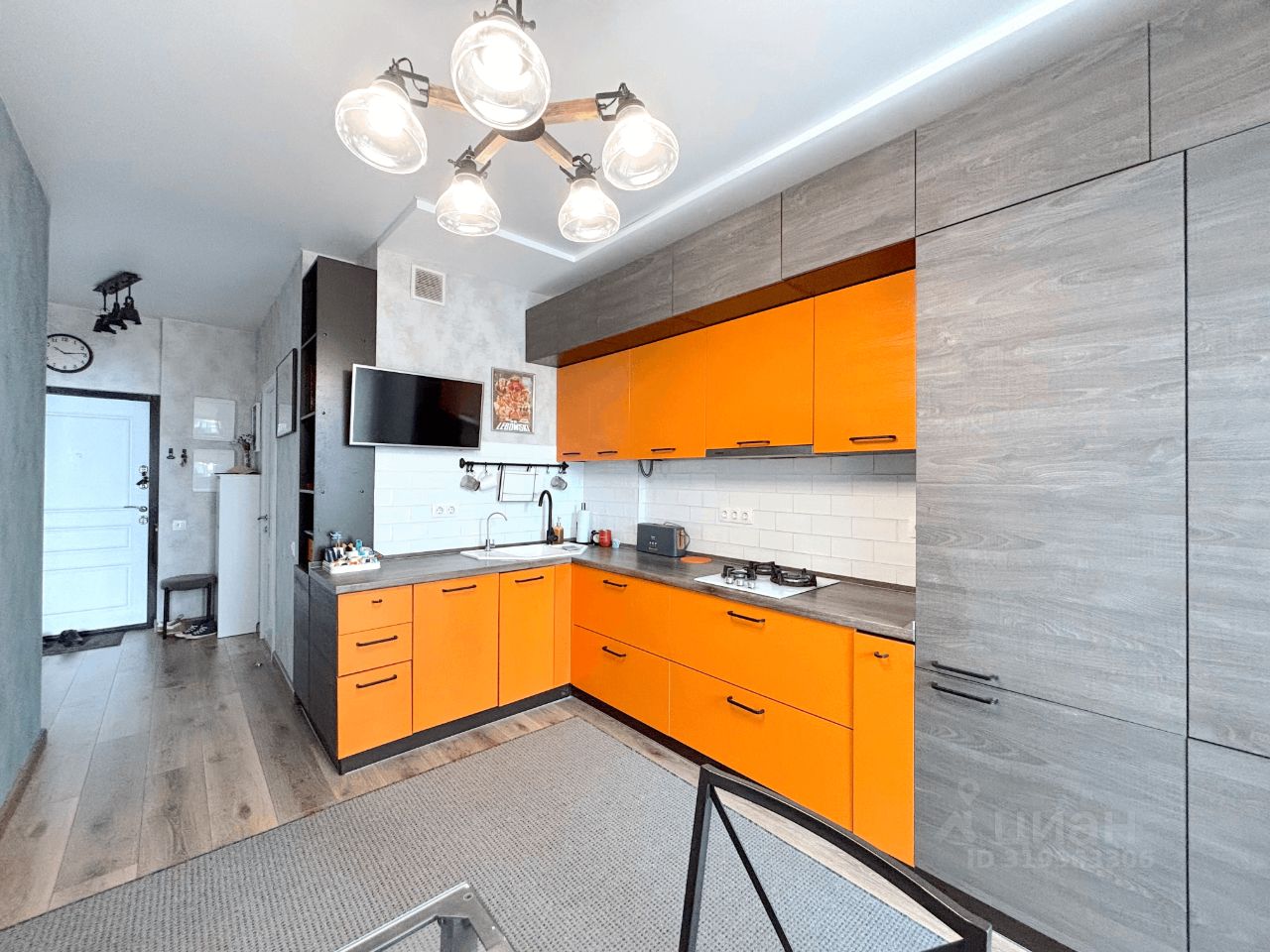 О КВАРТИРЕ: Хороший евро-ремонт по всех помещениях. На полу ламинат с текстурой дерева в гостиной прихожей и кухонной зоне. В ванной керамическая плитка. Дизайнерская мебель и качественная бытовая техника.