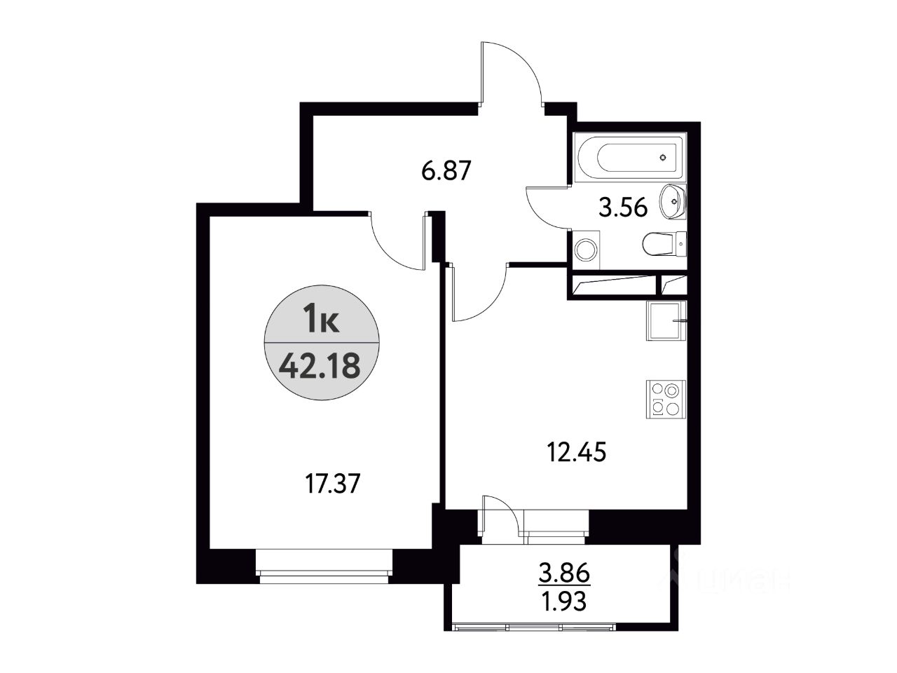 Общая площадь42,18 м2