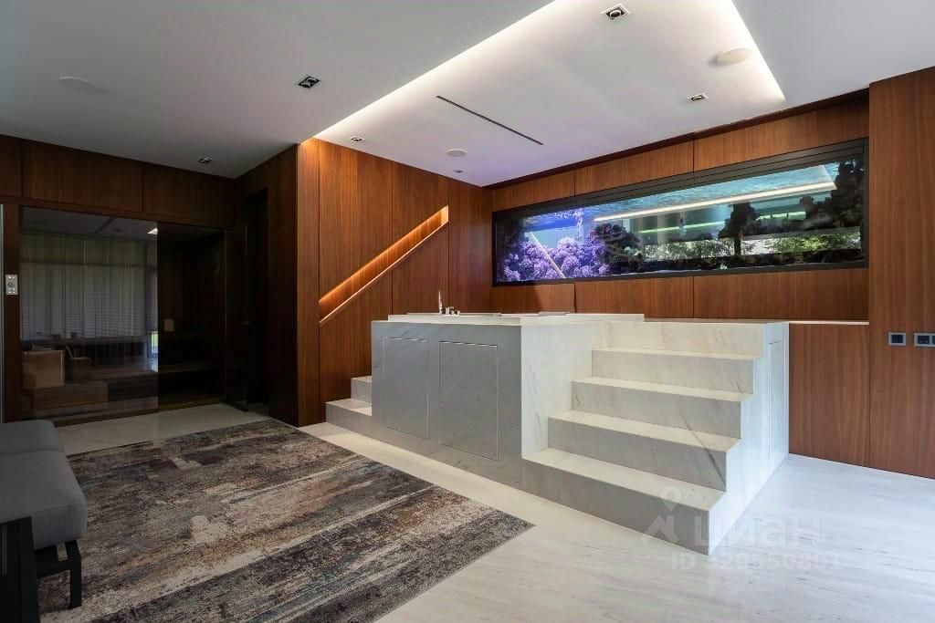 Предлагается на продажу новый современный модный Дом в КП Резиденс Клаб. Камерный поселок расположен в близости от Москвы, рядом вся инфраструктура. Также в поселке есть свой парк для прогулок. Планировка Дома: 1.холл, су, гардеробная, спа зона: сауна effegibi, душ, джакузи, выход на террасу, гостиная со вторым светом и парящим в воздухе камином от компании Focus и аквариумом с морской водой и выходом на большую террасу, кухня, столовая, кабинет, су, уличная мебель YACHTLINE 2.Цоколь - постирочная, квартира для персонала с отдельным входом, кладовая, караоке, кинотеатр, бильярдная, винный погреб, спортзал с оборудованием Matrix, 3.Второй этаж: основная спальня с гардеробной и су, 3 спальни с су и гардеробными. Отдельно стоящий гараж на 2 машиноместа и большая парковка для машин. Дизель-генератор. В отделке использованы дорогие материалы, мрамор, ценные породы дерева. Мебель известных мировых брендов Nattuzi, освещение Delta, сантехника Gessi, Huppe, техника VZug, Miele. Дом полностью готов для проживания. Задекорирован и укомплектован мебелью и текстилем.