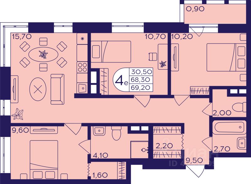 Продаётся 4-комнатная квартира в строящемся доме (Корпус 410), срок сдачи: I-кв. 2027, общей площадью 69.2 кв.м., на 7 этаже. ЖК ''Героев'' возводится в центре г.о. Балашиха, в мкрн Железнодорожный. Проект представляет собой 4 квартала монолитно-кирпичных домов комфорт-класса. Предлагаются студии, 1-, 2- и 3-комнатные квартиры с готовой отделкой, планировки - евро и классика. На территории построят детские сады и школы. В центральной части застройки оборудуют зоны для спорта и командных спортивных игр, велодорожки, детские игровые площадки и сквер с местами для отдыха. На первых этажах жилых корпусов будут магазины, банки, кафе и другие предприятия сферы услуг и торговли. Возле домов организуют авто- и велопарковки. В пешей доступности находится обширная зелёная зона - Ольгинский лесопарк, а также обжитые районы с развитой инфраструктурой, где работают детские сады и гимназии, поликлиники и ТЦ, школа искусств, спорткомплекс. Рядом с комплексом находится несколько остановок общественного транспорта. До метро ''Некрасовка'' можно добраться за 20 мин. на автобусе. В 5-7 минутах езды на маршрутке или в 15-20 минутах ходьбы располагается ст. Железнодорожная, путь со станции до Курского вокзала занимает 25 минут на ''Спутнике''. Кроме того, планируется запуск МЦД-4 от Железнодорожного до Апрелевки с переходами на метро и МЦК. На автомобиле до Москвы можно доехать за полчаса по Носовихинскому или Косинскому шоссе.