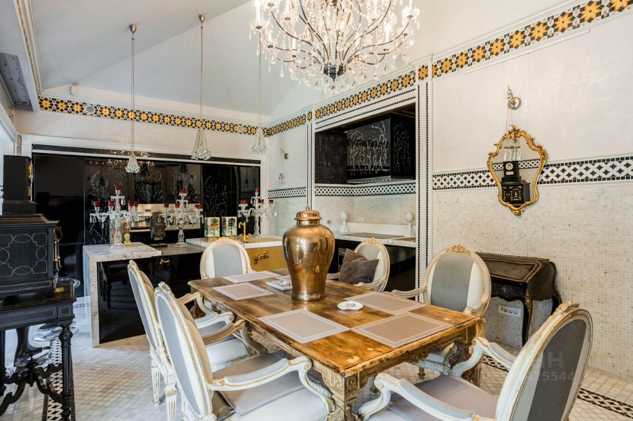На участке дополнительно расположены: дом для персонала 140квм, гараж на 2 автомобиля с квартирой для охраны, парковка, барбекю.