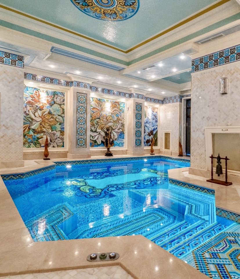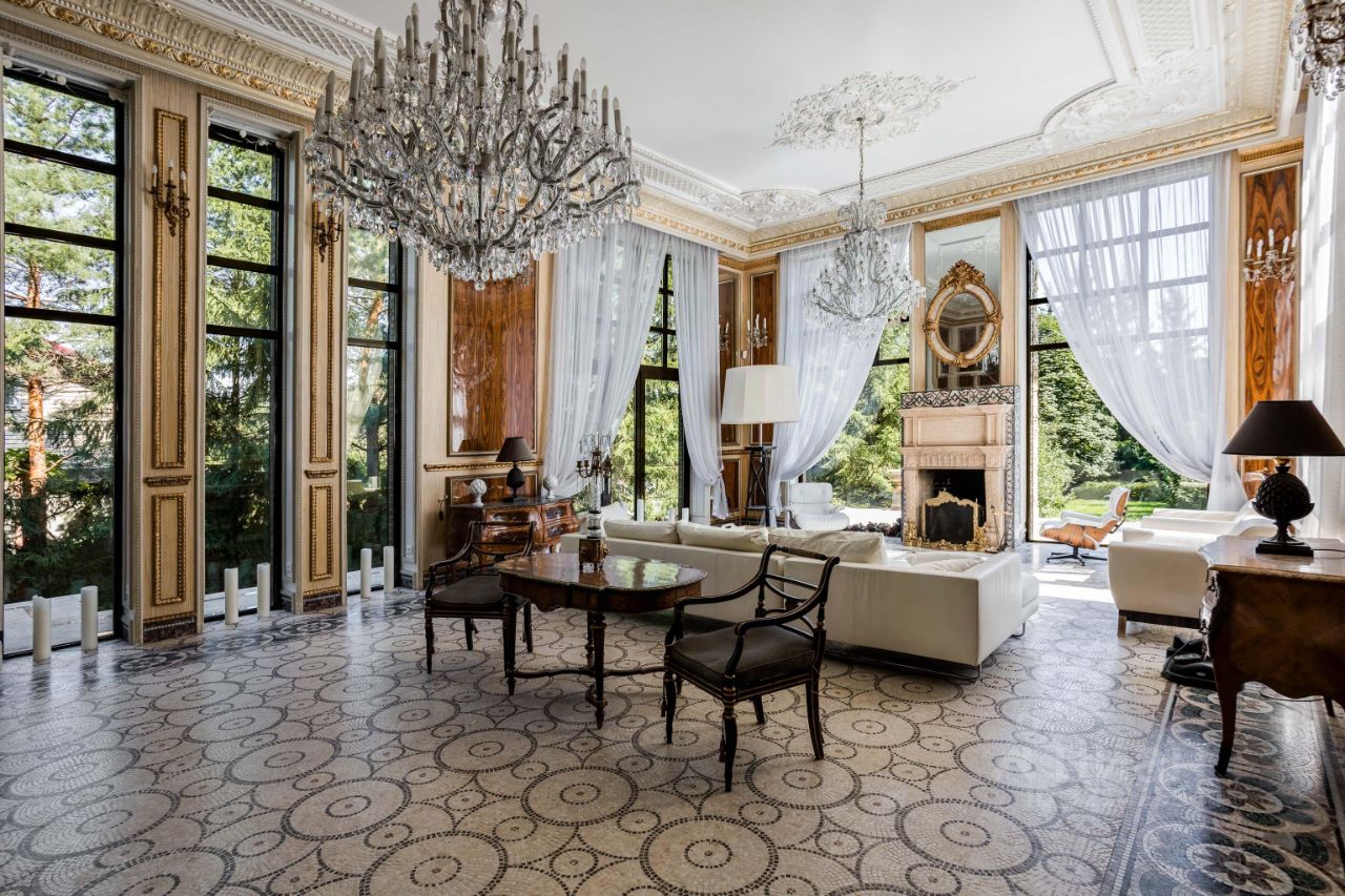2 этаж: мастер - спальня с 2 большими гардеробными комнатами и санузлом, балкон, холл, библиотека, каминный зал, кабинет, 3 спальни, каждая со своей гардеробной комнатой и санузлом.