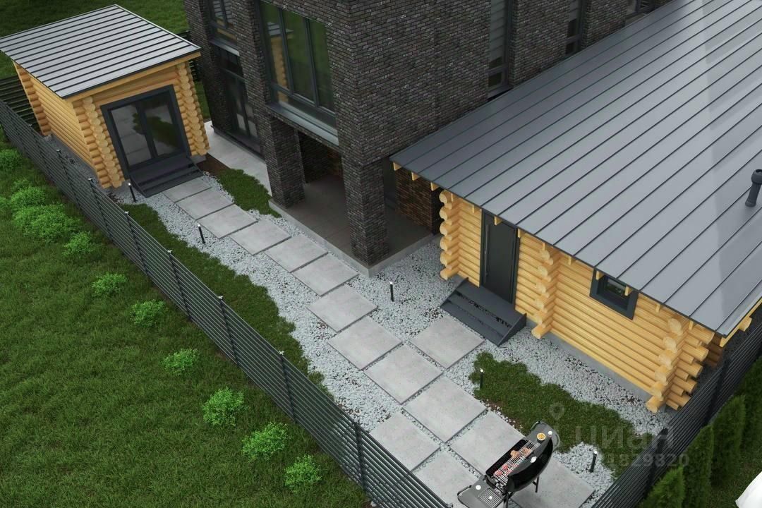 Первый этаж: • Кухня-гостиная со вторым светом (потолок 6 м) - просторное и светлое пространство для семейных вечеров и приема гостей. • Большая комната (гостевая спальня, кабинет или игровая) • Две большие террасы - идеальное место для отдыха на свежем воздухе. • Санузел • Гардеробная • Котельная • Прихожая