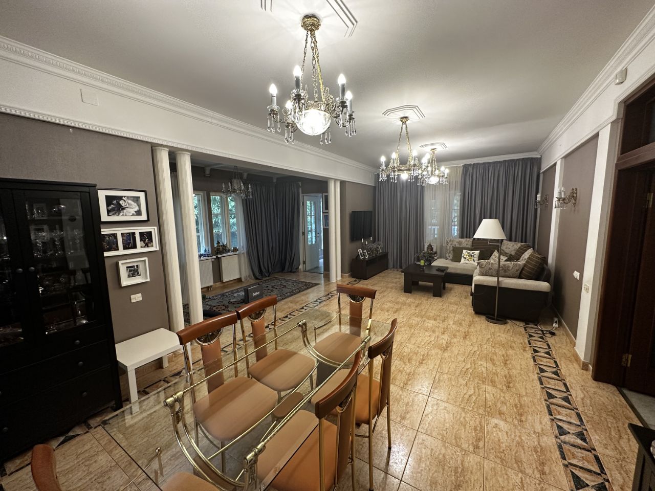 Установлен теплый пол. Просторная прихожая с большим гардеробом и санузлом. Огромная гостиная с выходом в домашний тренажерный зал. Кухня и прачечная с фильтром очистки воды ЭКодар (обслуживается по договору). Бойлерная и шведский котел СТС. Комната с столом для пинг-понга. Рабочий кабинет с камином, санузлом с душевой кабиной и большой гардеробной. Второй этаж: Спальня с санузлом и душевой. Рабочий кабинет с выходом на веранду. Две детские комнаты, оформленные в разных стилях, одна из которых имеет выход на веранду. Просторная ванная комната с джакузи. Задняя веранда дома создана для спокойного отдыха и обедов на свежем воздухе с видом на собственный сад.