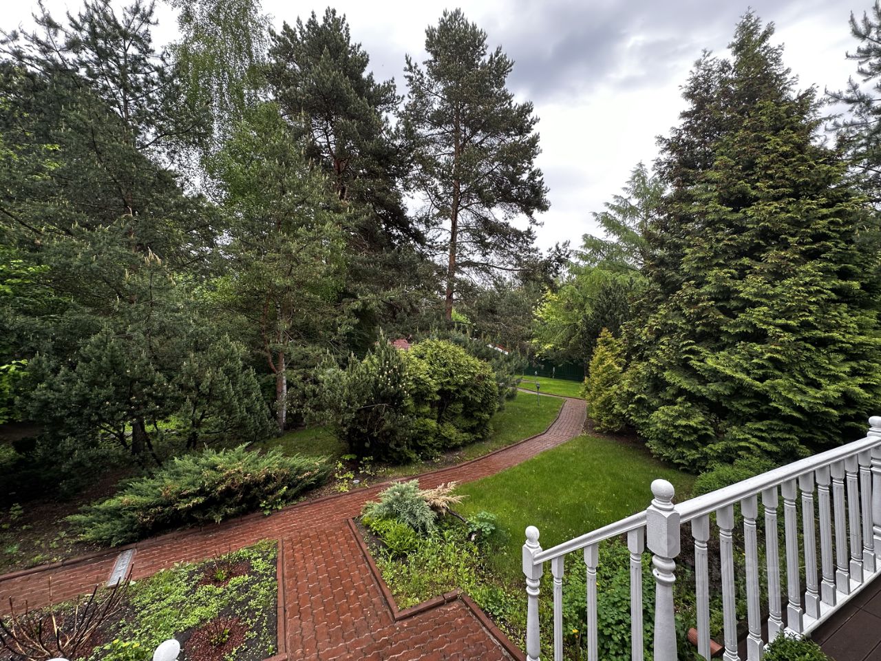 Дом расположен на земельном участке площадью 3900 кв. м, на котором ранее находился исторический графский дом. Участок правильной формы с ухоженной территорией, великолепным газоном и разнообразием растений, включая туи, сосны и другие.