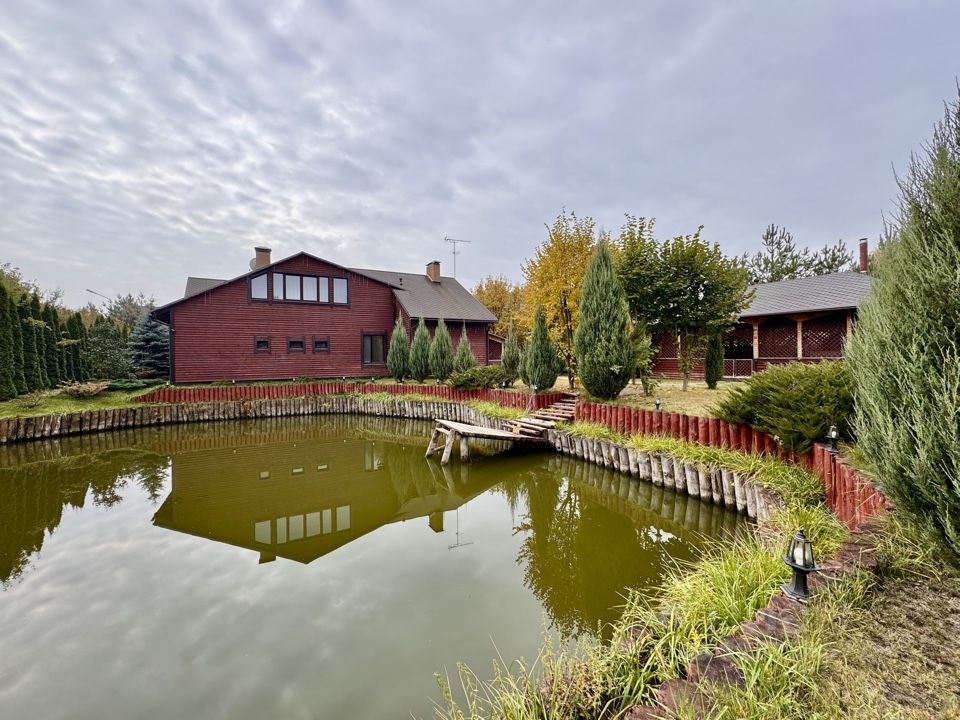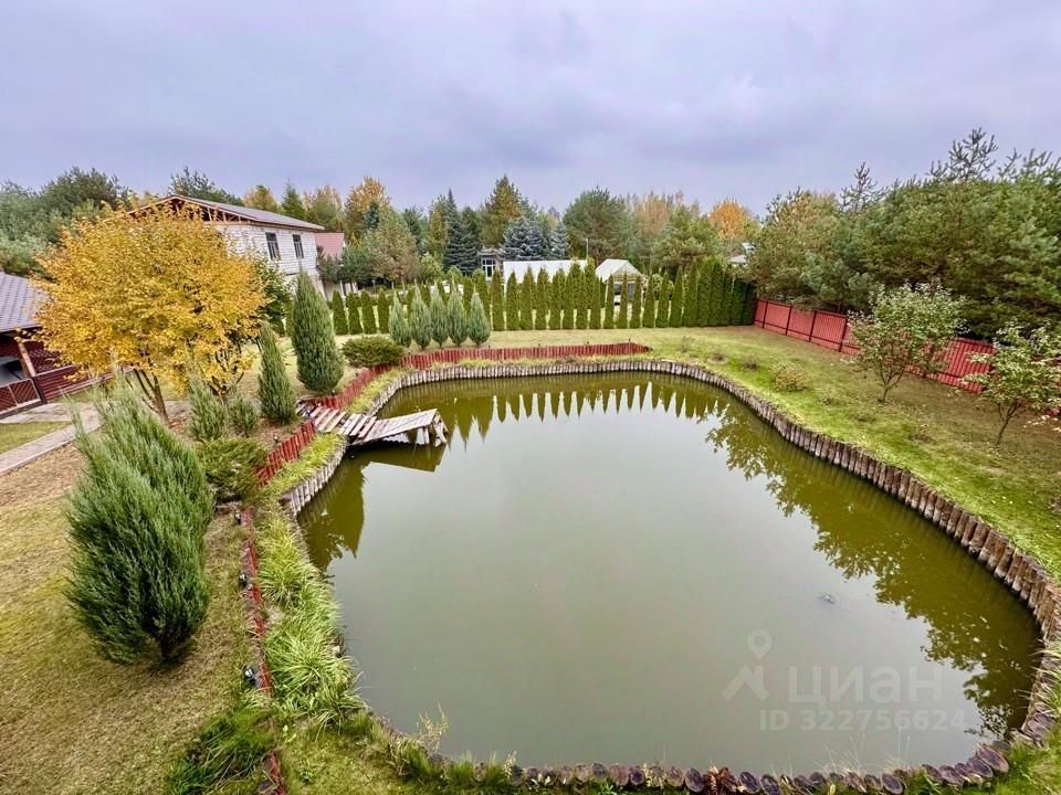 Пруд: чистый, ухоженный,водятся караси. Возможности: купание, рыбалка, отдых на берегу Ландшафт: облагороженная территория, газон, автоматическая система полива, плодовые деревья, небольшой огород. Дополнительно: большая беседка у пруда, зона барбекю, вальер для собаки.