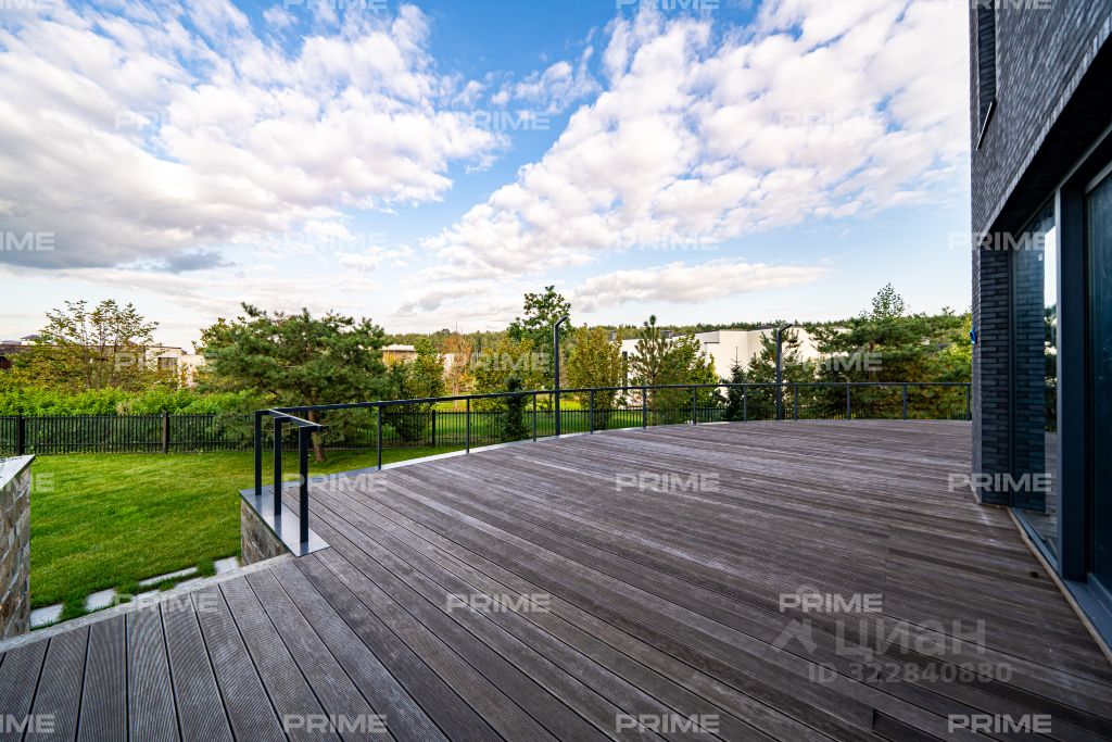 На продажу предлагается дом в современном коттеджном поселке с развитой внутренней и внешней инфраструктурой. Дом выполнен в современном стиле, фасад полностью облицован дорогим немецким клинкером. Все остекление в доме - окна немецкой фирмы SCHUCO. В доме очень продуманная планировка, включающая в себя 5 спален с санузлами и гардеробными, а также, кабинет с санузлом, гардеробной и сейфовой комнатой, который может стать дополнительной спальней на первом этаже. В доме есть полноценная квартира персонала с двумя спальнями и хозяйственной частью.