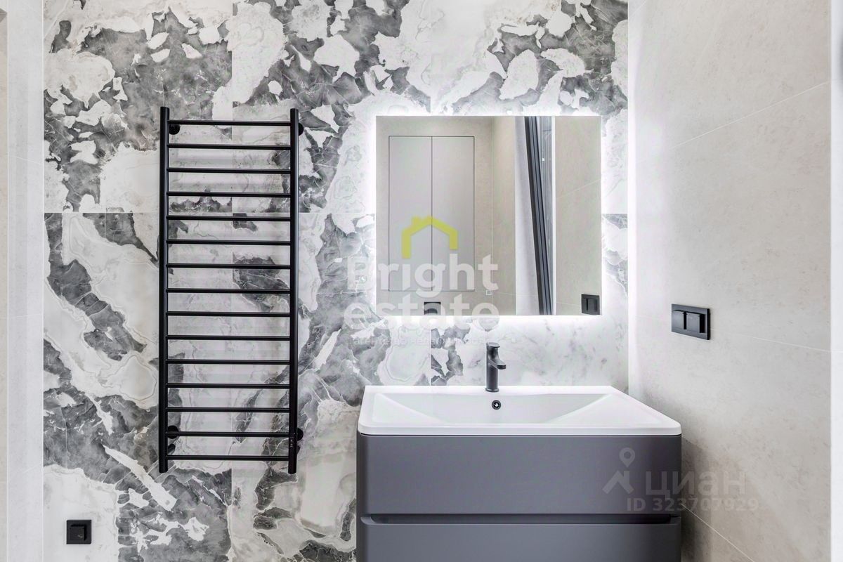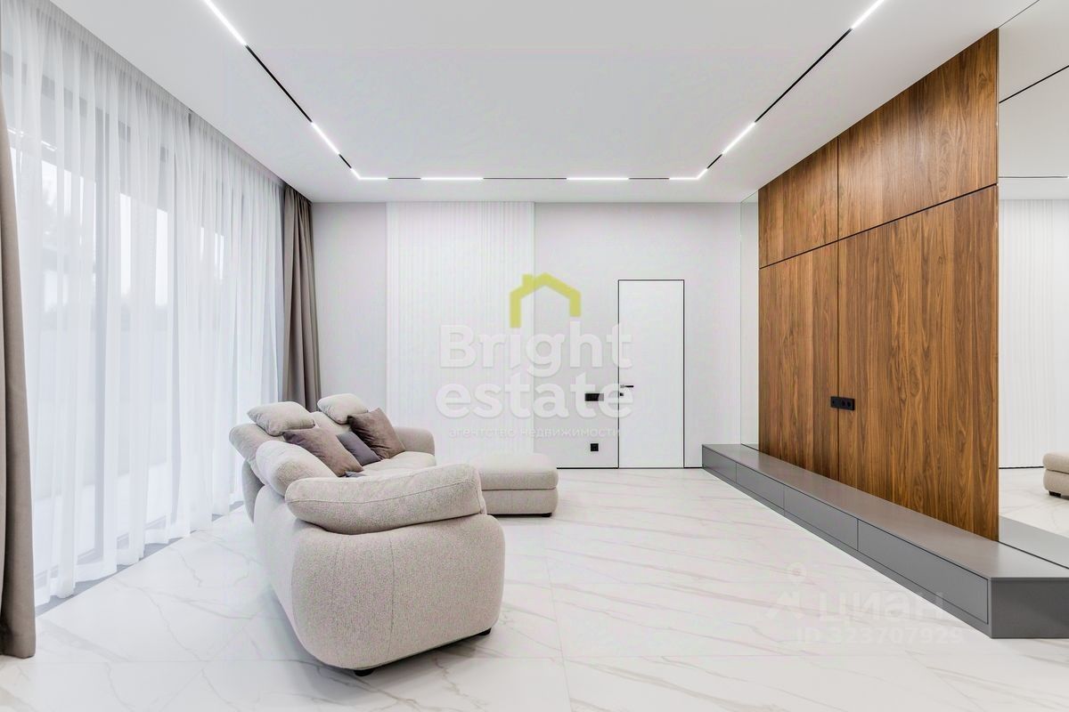 Пространство наполнено светом, интерьер оформлен в спокойных природных тонах с использованием премиальных материалов. Каждая деталь продумана — от дизайнерской мебели и техники до текстур отделки, создающих атмосферу уюта и статуса.