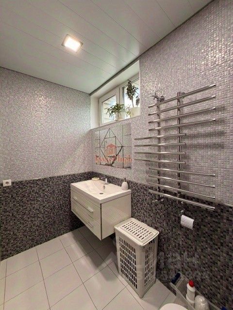 КОММУНИКАЦИИ В доме центральные газ, вода, водоотведение, электричество. Дом отапливается одним (из имеющихся двух) газовым котлом мощностью 70 кВт. На цокольном этаже смонтированы водяные теплые полы, а электрические полы обогревают 1 этаж: кухню, санузел, рабочий кабинет.