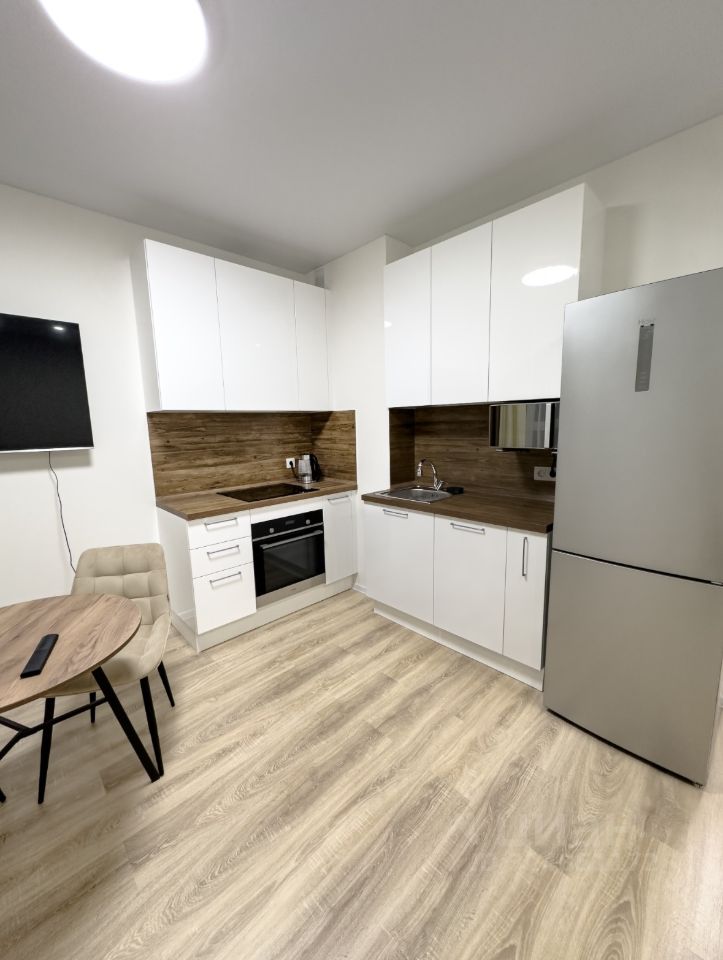 Квартира полностью укомплектована всей необходимой мебелью и бытовой техникой — можно заезжать сразу.