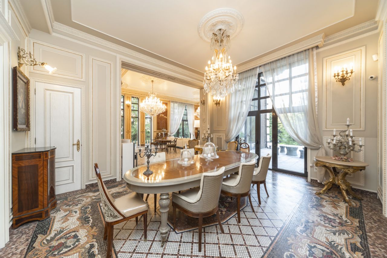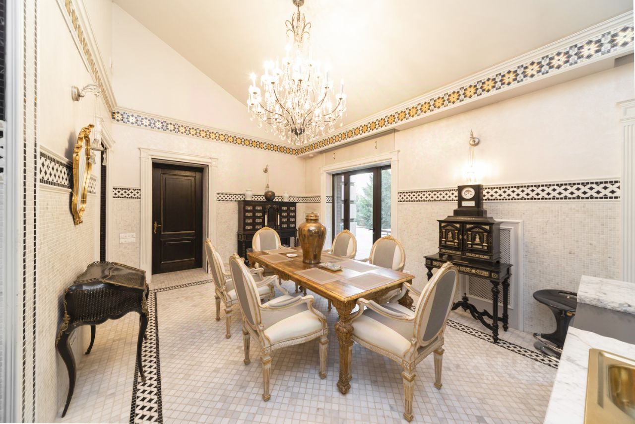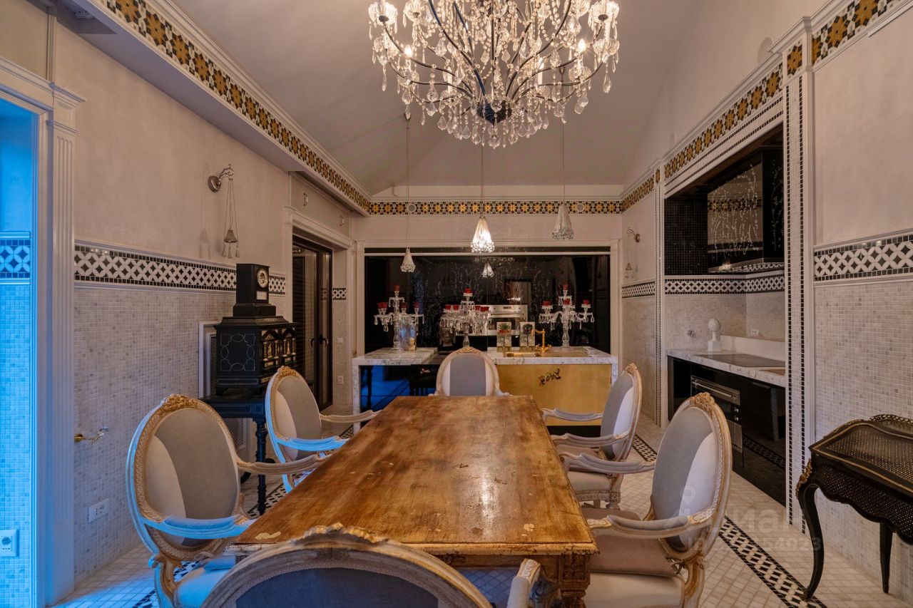 Загородный дом 870 м² на берегу Москвы-реки, 7 км от МКАД по Ильинскому шоссе Предлагается к продаже просторный загородный дом общей площадью 870 м², расположенный всего в 7 км от МКАД по Ильинскому шоссе, на участке 38 соток. Дом находится в уникальном месте — на берегу Москвы-реки, напротив Лохина острова, в непосредственной близости от музея-усадьбы Архангельское, в окружении природы и при этом рядом с развитой инфраструктурой. О доме: 6 спален 8 ванных комнат 2 кухни Просторная гостиная 170 м² Вторая гостиная 80 м² Бассейн с системой противотока Турецкая баня (хаммам) Отделка выполнена с использованием дорогостоящих материалов.