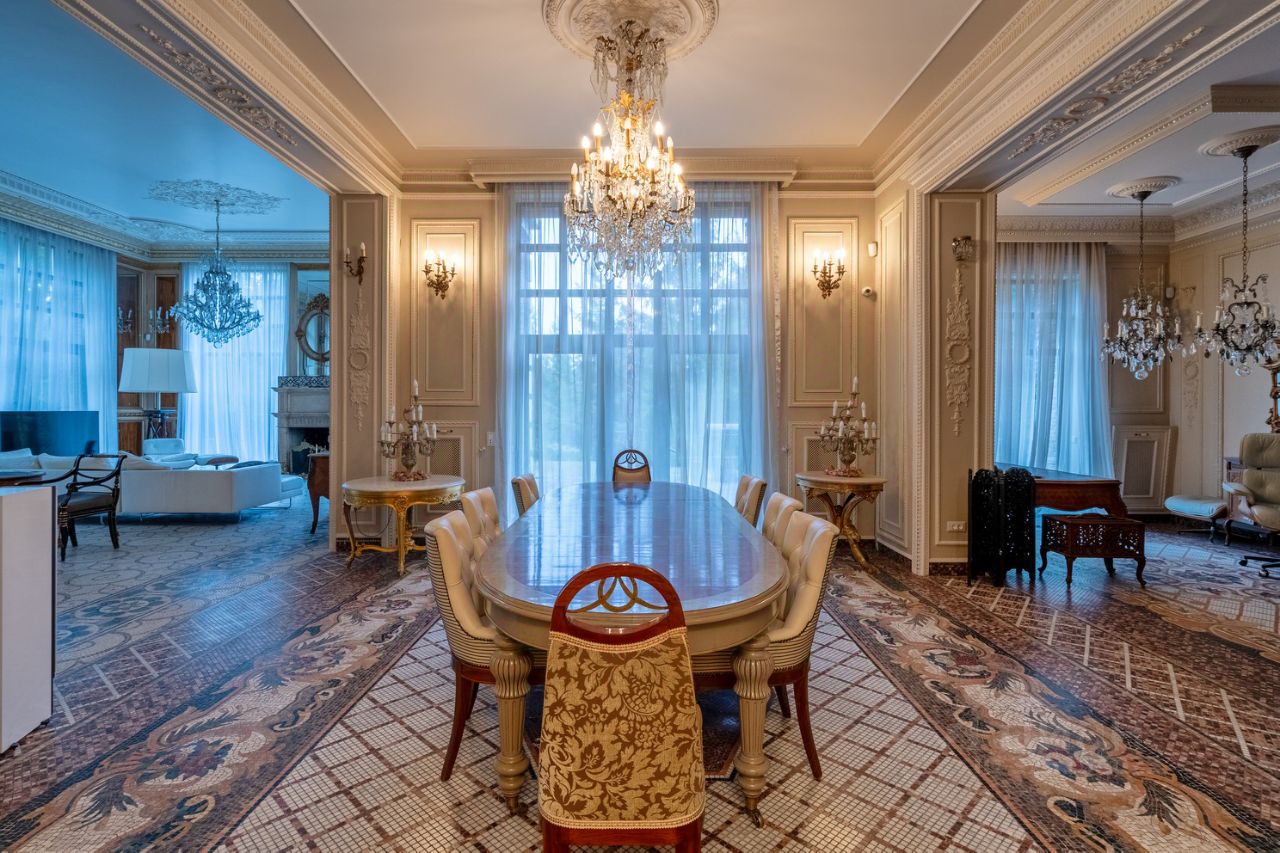 Загородный дом 870 м² на берегу Москвы-реки, 7 км от МКАД по Ильинскому шоссе Предлагается к продаже просторный загородный дом общей площадью 870 м², расположенный всего в 7 км от МКАД по Ильинскому шоссе, на участке 38 соток. Дом находится в уникальном месте — на берегу Москвы-реки, напротив Лохина острова, в непосредственной близости от музея-усадьбы Архангельское, в окружении природы и при этом рядом с развитой инфраструктурой. О доме: 6 спален 8 ванных комнат 2 кухни Просторная гостиная 170 м² Вторая гостиная 80 м² Бассейн с системой противотока Турецкая баня (хаммам) Отделка выполнена с использованием дорогостоящих материалов. Дом полностью меблирован: в интерьере — антикварная мебель и предметы ведущих дизайнерских домов Италии. Участок и дополнительные строения: Участок 38 соток Взрослые хвойные деревья Отдельный дом для персонала Гараж Безопасность и оснащение: Система видеонаблюдения Охранная сигнализация Gulfstream Инфраструктура и транспорт: Развитая инфраструктура района Рядом школа Президент Ильинская больница Рестораны и магазины Удобный выезд на Рижское шоссе и Рублёво-Успенское шоссе Дом сочетает в себе приватность, престижное расположение, высокий уровень комфорта и близость к Москве, что делает его идеальным вариантом для постоянного проживания или загородной резиденции. стоимость аренды 1 100 000 применяется при условии оплаты за 6 месяцев вперёд