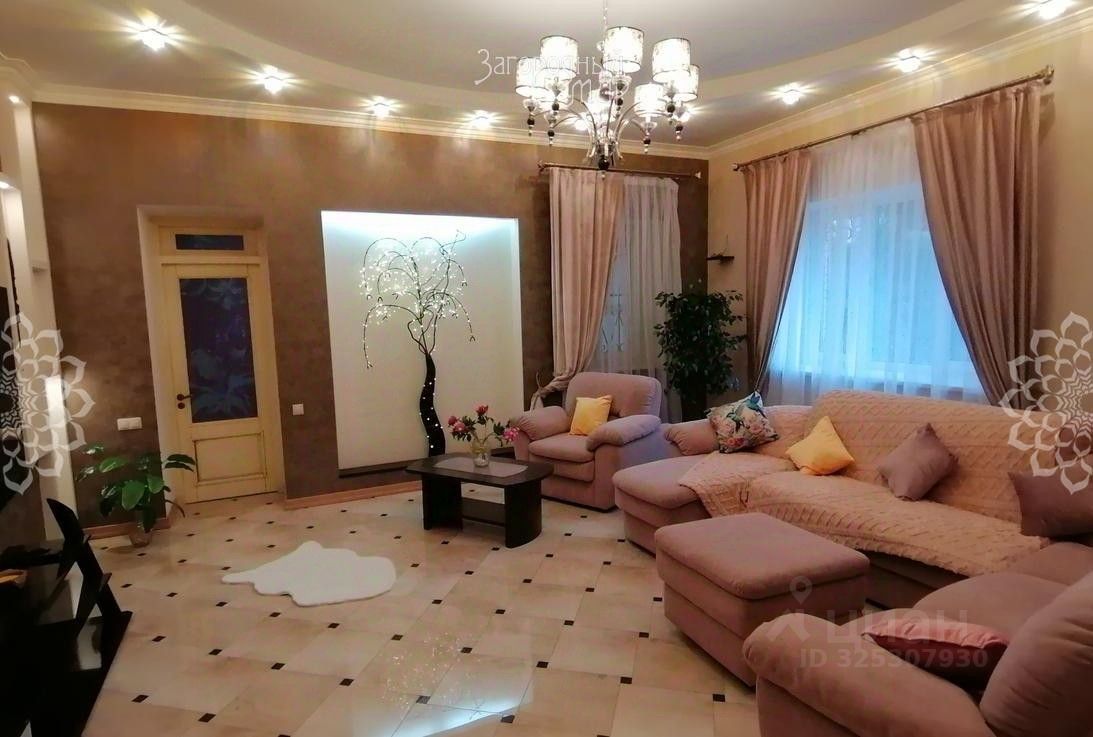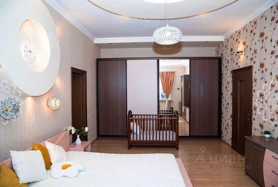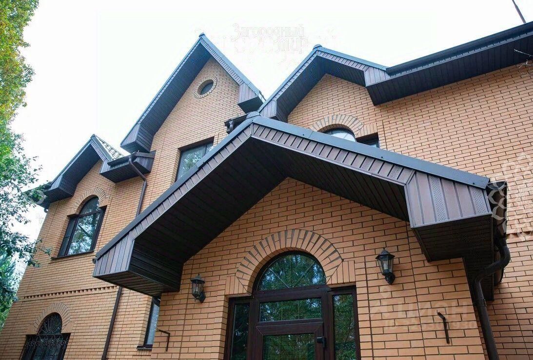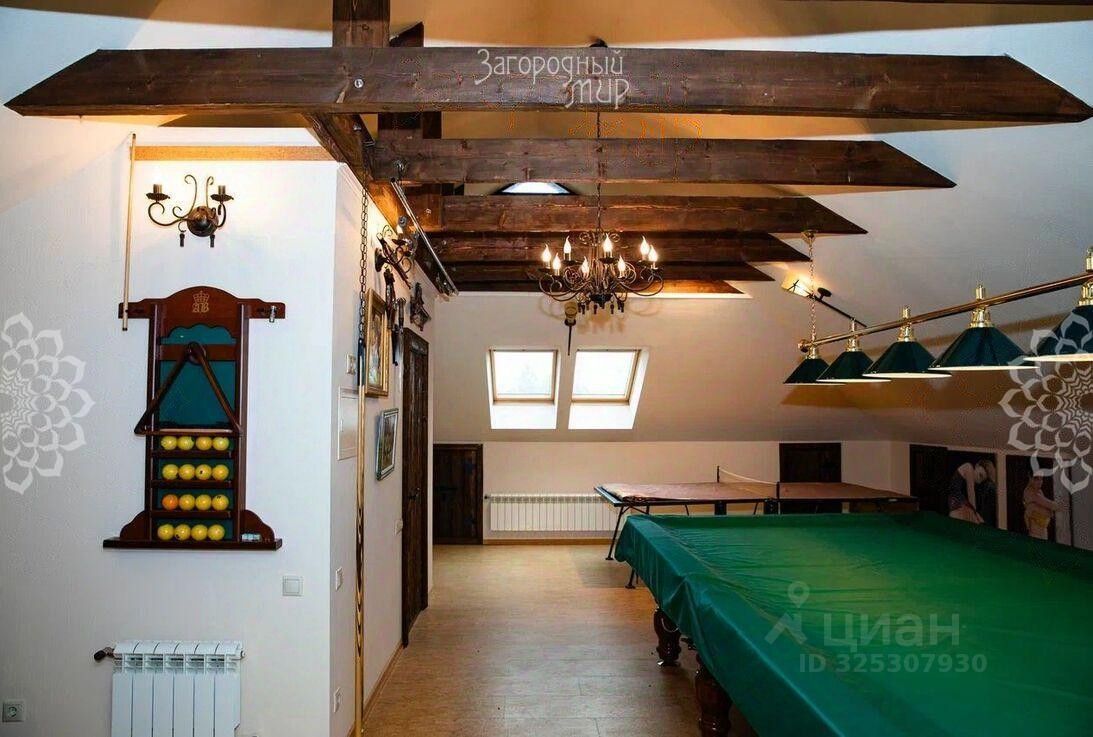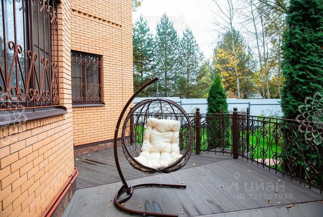Построенный из керамзитобетонных блоков, дом внешне отделан облицовочным кирпичом, кровля - металлочерепица, окна тройные стеклопакеты. В доме уютная гостиная, оборудованная кухня-столовая, 5 спален (одна из которых на 1-м этаже), кабинет, холл, 3 с/у, мансардное пространство - бильярд и настольный теннис. Уютная терраса с качелями и плетеной мебелью.