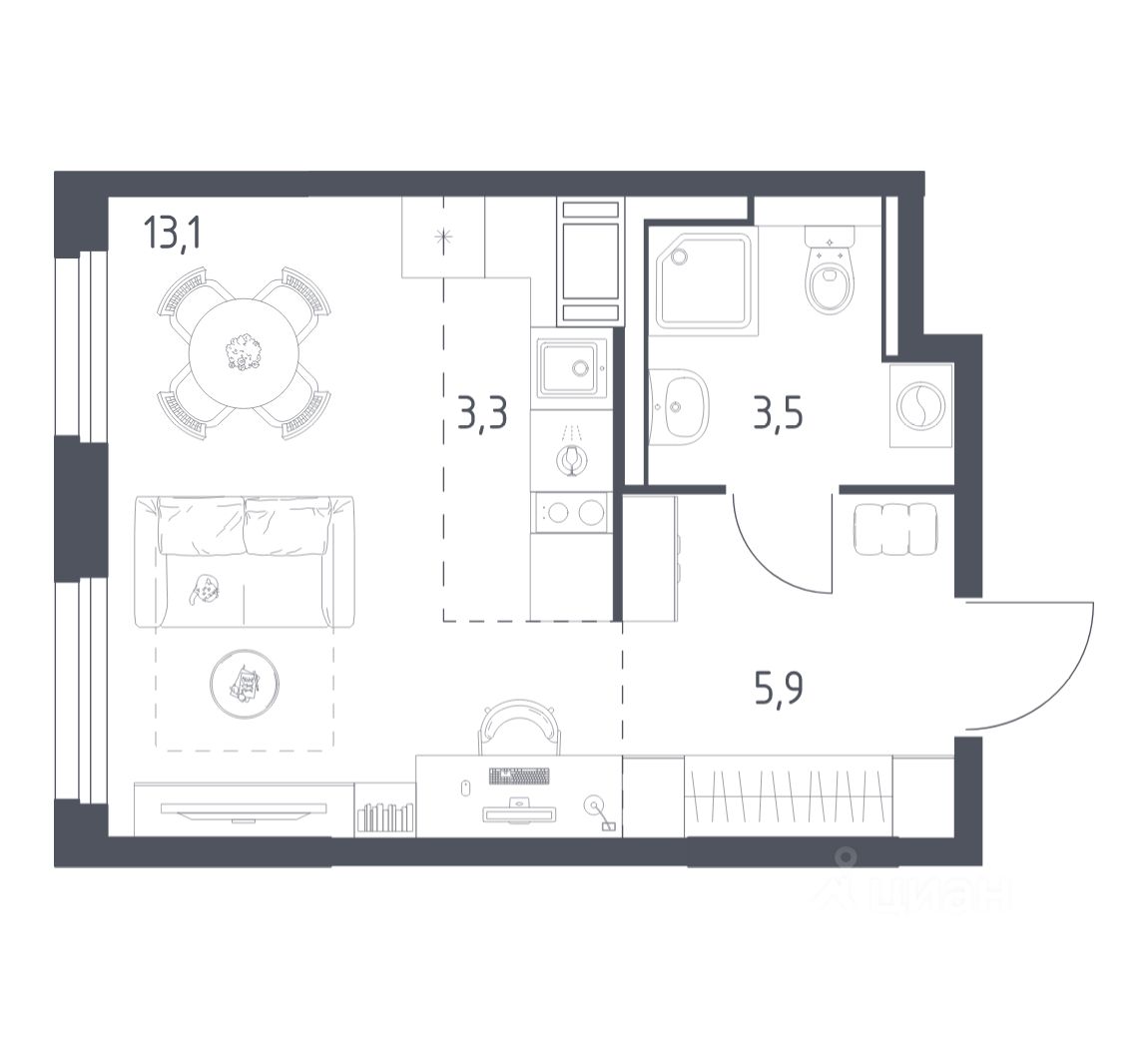 Строим кварталы для жизни с заботой о будущем. Предлагается студия комфорт-класса площадью 25,5 кв.м в корпусе 4.1 на 7-м этаже, в жилом комплексе ''Мытищи Парк''.