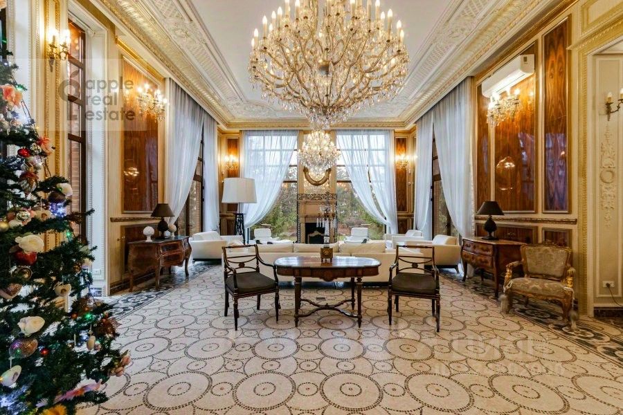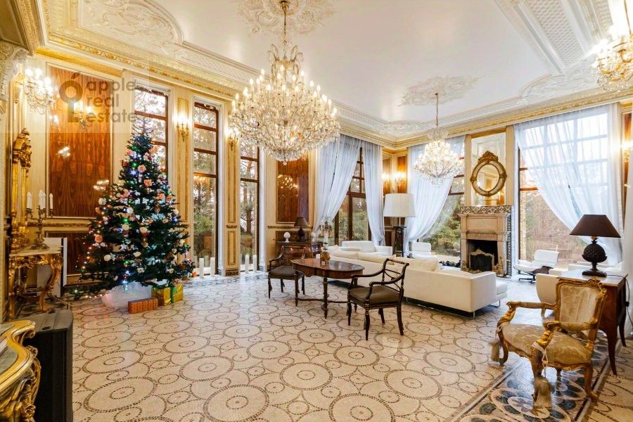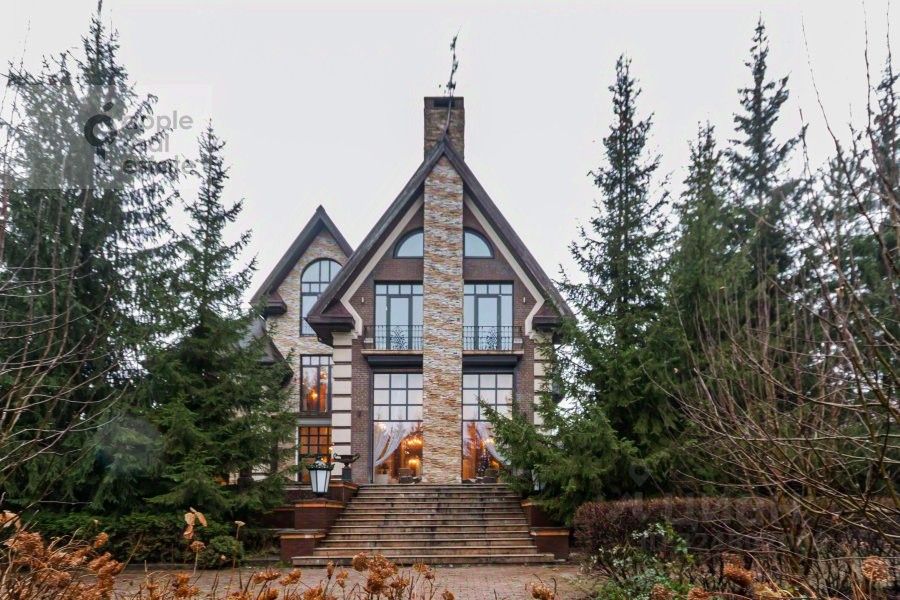 Площадь дома - 860 кв.м. Материал дома - кирпич. Количество этажей - 3. Спален - 3. Санузлов - 7. Площадь участка - 35 соток. Тип участка: лесной. Есть бассейн, гараж на 2 а/м, квартира для персонала (кухня, 2 спальни, с/у).