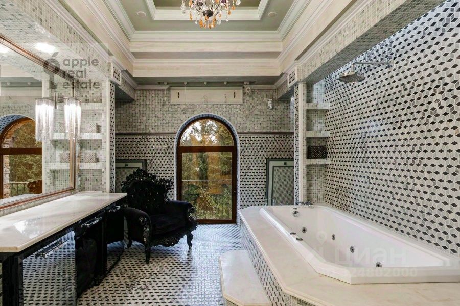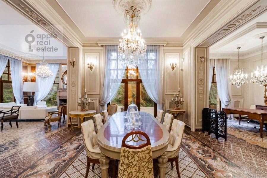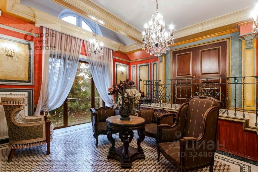 Площадь дома - 860 кв.м. Материал дома - кирпич. Количество этажей - 3. Спален - 3. Санузлов - 7. Площадь участка - 35 соток. Тип участка: лесной. Есть бассейн, гараж на 2 а/м, квартира для персонала (кухня, 2 спальни, с/у). Дом полностью меблирован и оснащён необходимой бытовой техникой,