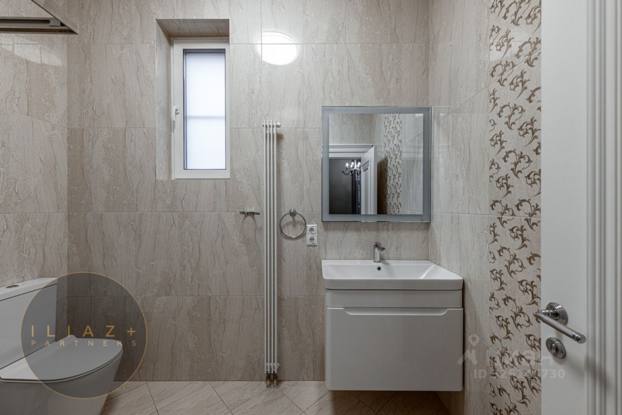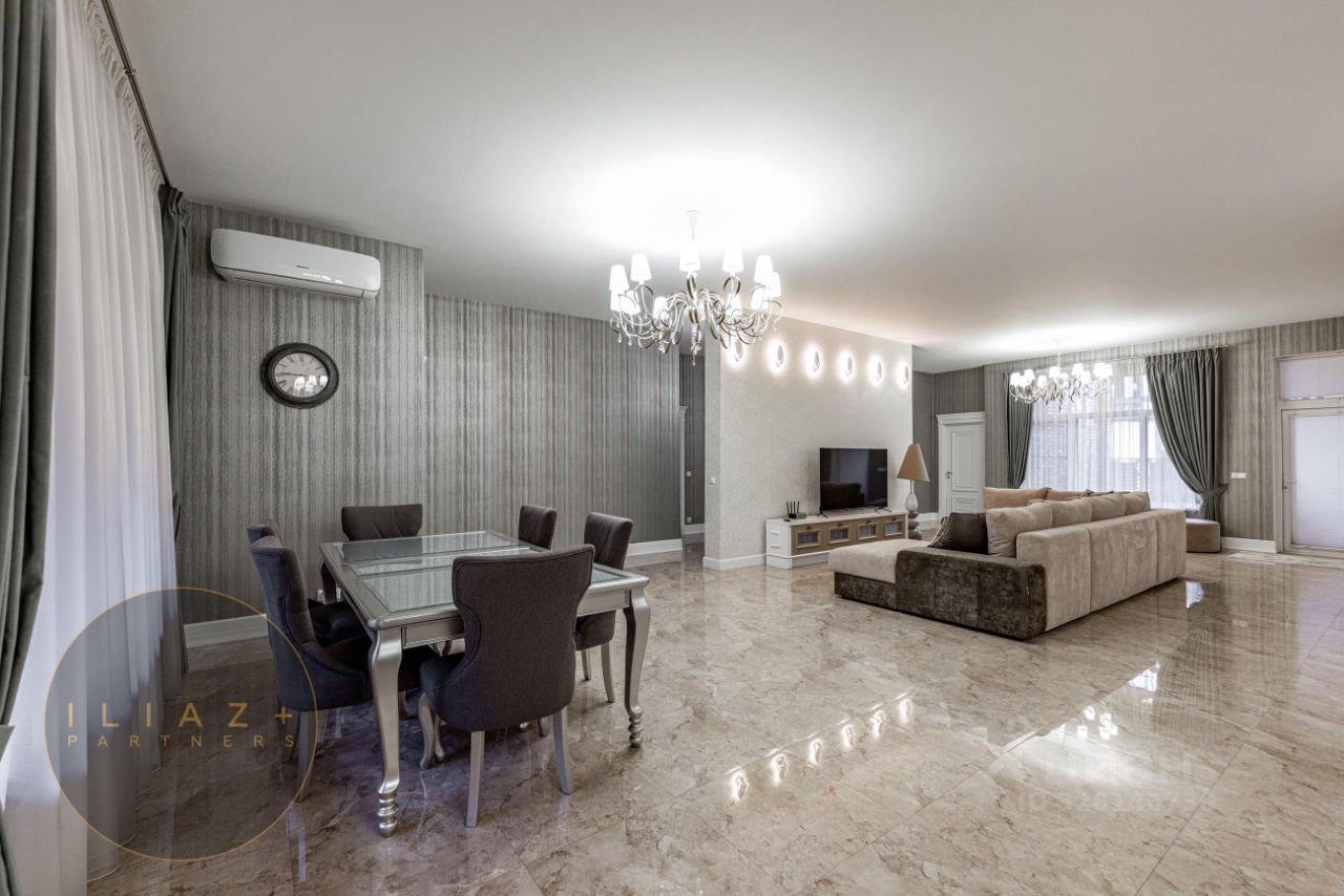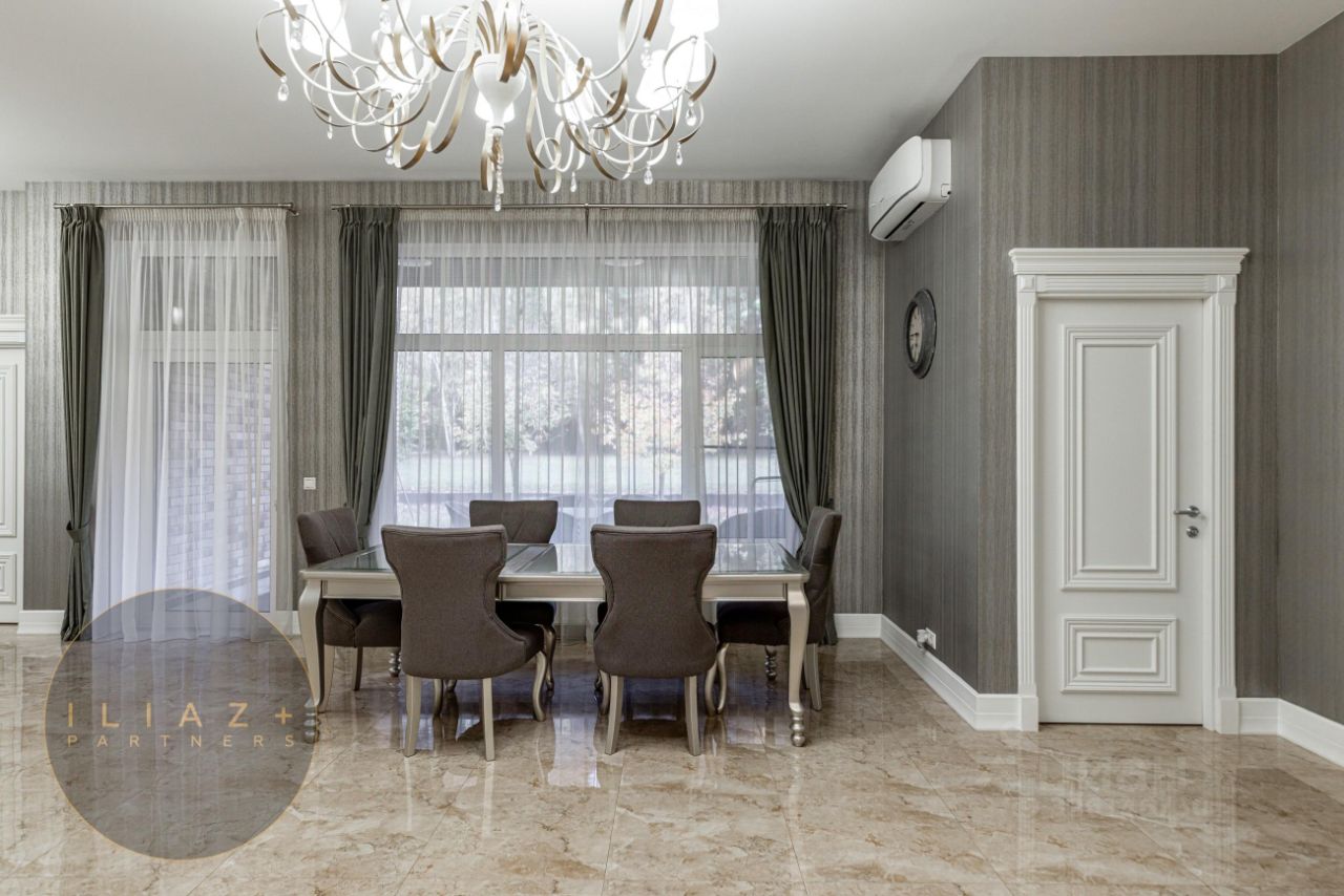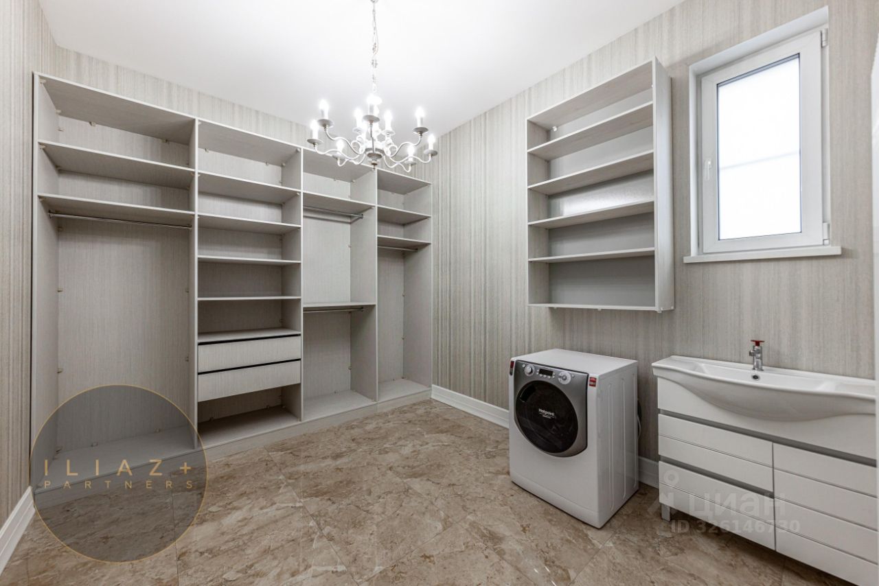 Характеристики дома: • Гараж на 2 автомобиля и навес на 3 автомобиля. • 4 спальни и 4 санузла. • Русская баня с комнатой отдыха (можно переоборудовать в 5 спальню). • 2 гардеробные комнаты и большая постирочная с системой хранения. • Много встроенных шкафов-купе. • Кухня Atlas lux в стиле Арт-Деко.