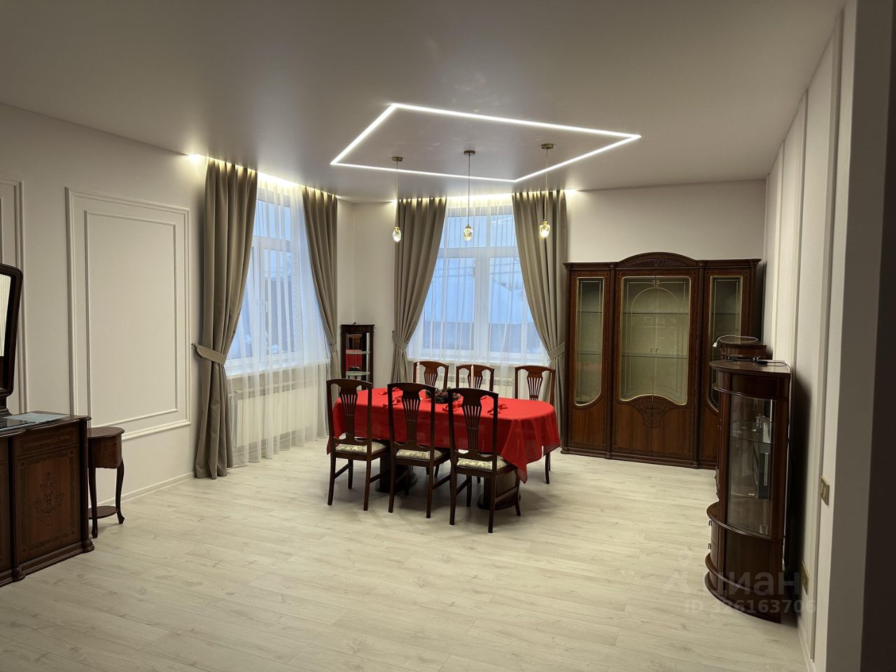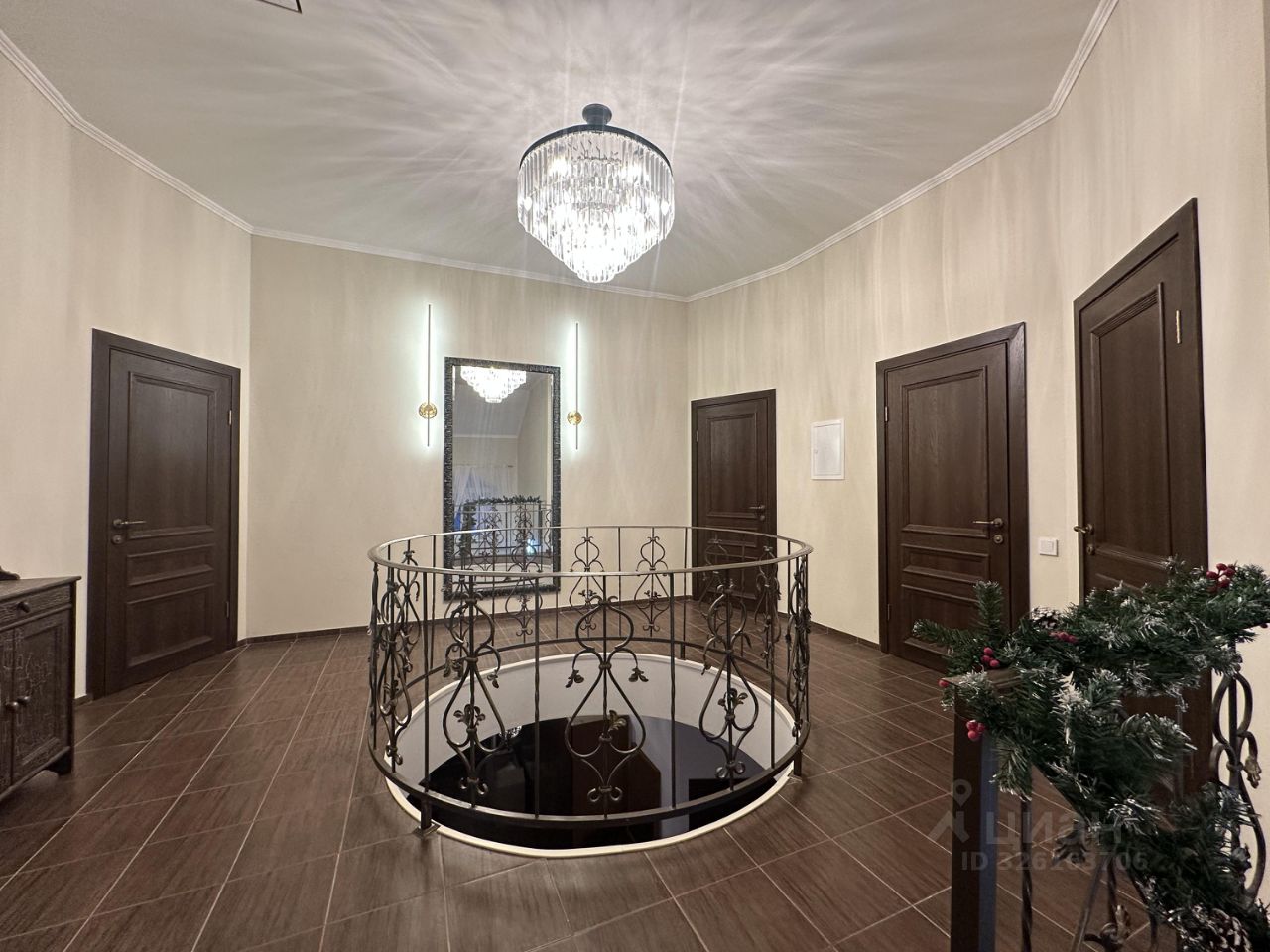 Эксклюзивное предложение — дизайнерский коттедж 430 м² в Солослово, Рублёвка (16 км от МКАД) Редкий свежий объект 2023 года: трёхэтажный дом (цоколь + 1-й + 2-й с мансардой) на участке 10 соток в закрытой, ухоженной деревне Солослово — одном из самых престижных и сформированных уголков Рублёвки. Тишина, лес вокруг, река Медвенка неподалёку, круглосуточная охрана, магистральные коммуникации (газ, центральная канализация, вода, 15 кВт, интернет), вся инфраструктура в 515 минутах. Экстерьер и участок Классический фасад — натуральный камень + кирпич, двускатная крыша (зимой — настоящая сказка), большие окна, балконы и терраса. Участок огорожен высоким забором, удобный подъезд, место под 23 машины, отдельная хозпостройка (гараж/сарай с рольставнями). Вид — на поселок, соседние резиденции и лес. Планировка — идеально для семьи Цокольный этаж (-1) • Встроенная сауна с деревянной отделкой, каменкой и подсветкой • Просторная зона отдыха с лежаками, панорамным окном и мягким светом • Высокие потолки и площадь — при желании здесь легко сделать бильярдную, кинотеатр или небольшой бассейн 1-й этаж Впечатляющий холл с круглой лестницей и хрустальной люстрой Большая гостиная с мягкой зоной Элегантная столовая под хрустальными подвесами Кухонная зона (готовится к установке новой премиум-кухни) Гостевая комната Санузел Гардеробная 2-й этаж • 3 полноценные спальни (мастер с панорамным видом) • 2 детские комнаты • Комната для гостей • Отдельная комната для персонала / няни • 23 санузла с современной сантехникой (гидромассаж, тропический душ) Отделка и оснащение 2023 года Тёплые тона, паркет/ламинат под массив, текстурные обои, лепнина, встроенные зеркальные шкафы, кондиционеры в каждой комнате, многоуровневое освещение, электрический камин в золотой раме. Мебель и декор — в едином изысканном стиле. Дом полностью готов к заезду. Эксклюзивный бонус При покупке — новая премиум-кухня на заказ стоимостью 1 000 000 ? в подарок (материалы, техника, монтаж — всё включено, выбираете сами). Свежий ремонт, сауна + зона отдыха в цоколе, семейная планировка, подарок за миллион — такое на Рублёвке появляется крайне редко. Звоните / пишите — эксклюзив уходит быстро.