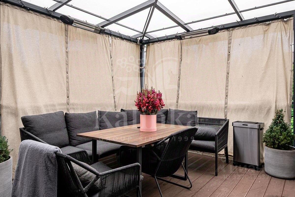 Планировка дома: 1 этаж: прихожая, с/у, гардеробная, холл, гостиная с камином, кухня столовая, гостевая комната, котельная с выходом в подвал, терраса с зоной барбекю (кухня с подведенной водой, стол из тикового дерева и уличная мебель, энергосберегающее электрообогреватели, качели, турник). 2 этаж: 2 спальни с гардеробными, 2 спальни с гардеробными и выходом на балконы, санузел (для детских комнат), в каждой спальне отдельная гардеробная комната, постирочная (стир. и сушильная машины Miele). 3 этаж: гостевая комната, кладовые, просторный санузел и целый этаж свободного назначения.