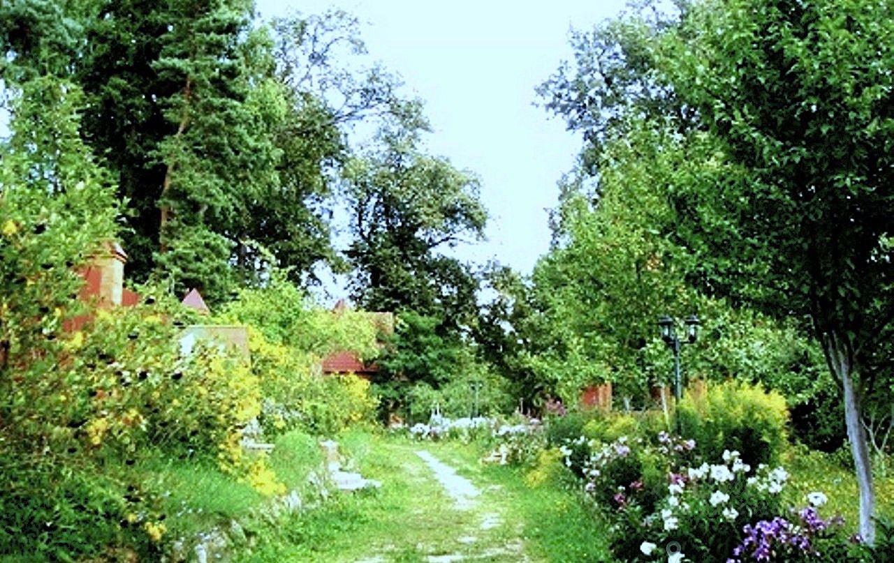 Участок ухоженный, кусты, плодовые деревья, элементы ландшафтного дизайна.