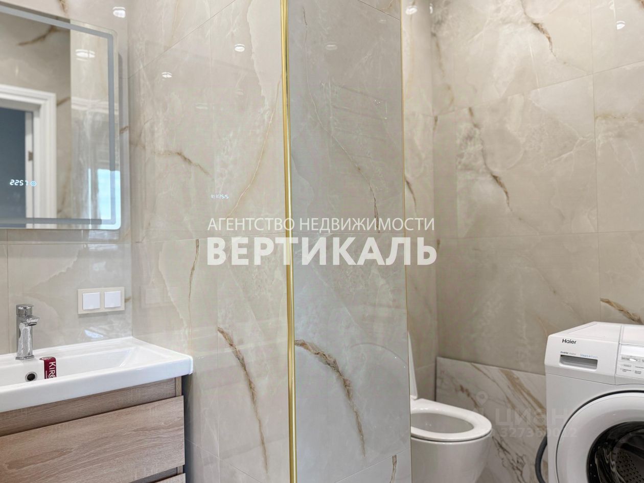 Современный санузел с качественной сантехникой и ванной/душевой кабиной.